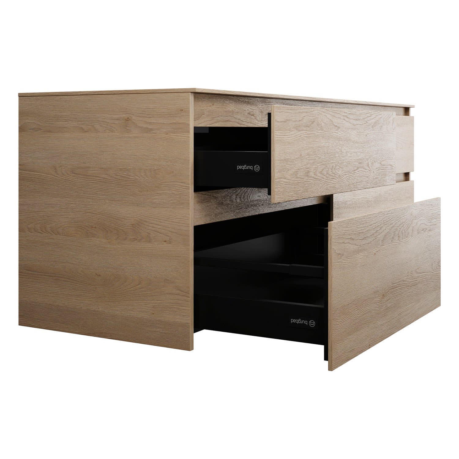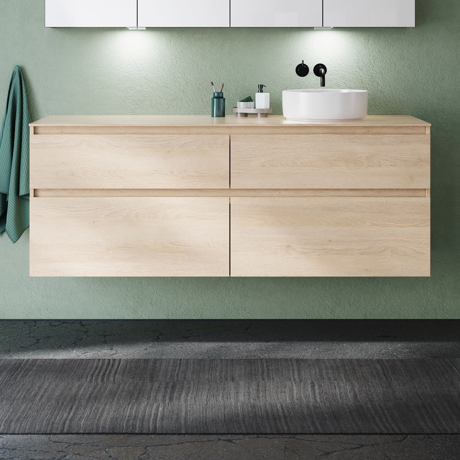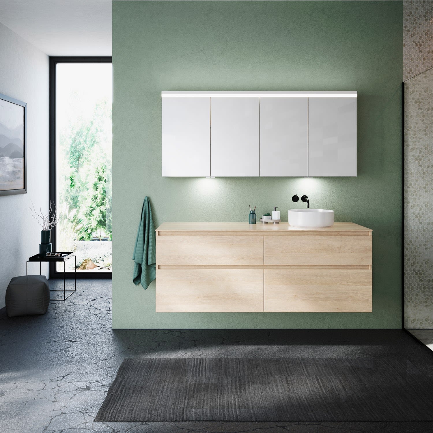 burgbad Lin20 Waschtischunterschrank mit Konsolenplatte 160 cm, 4 Auszüge, Beckenausschnitt rechts