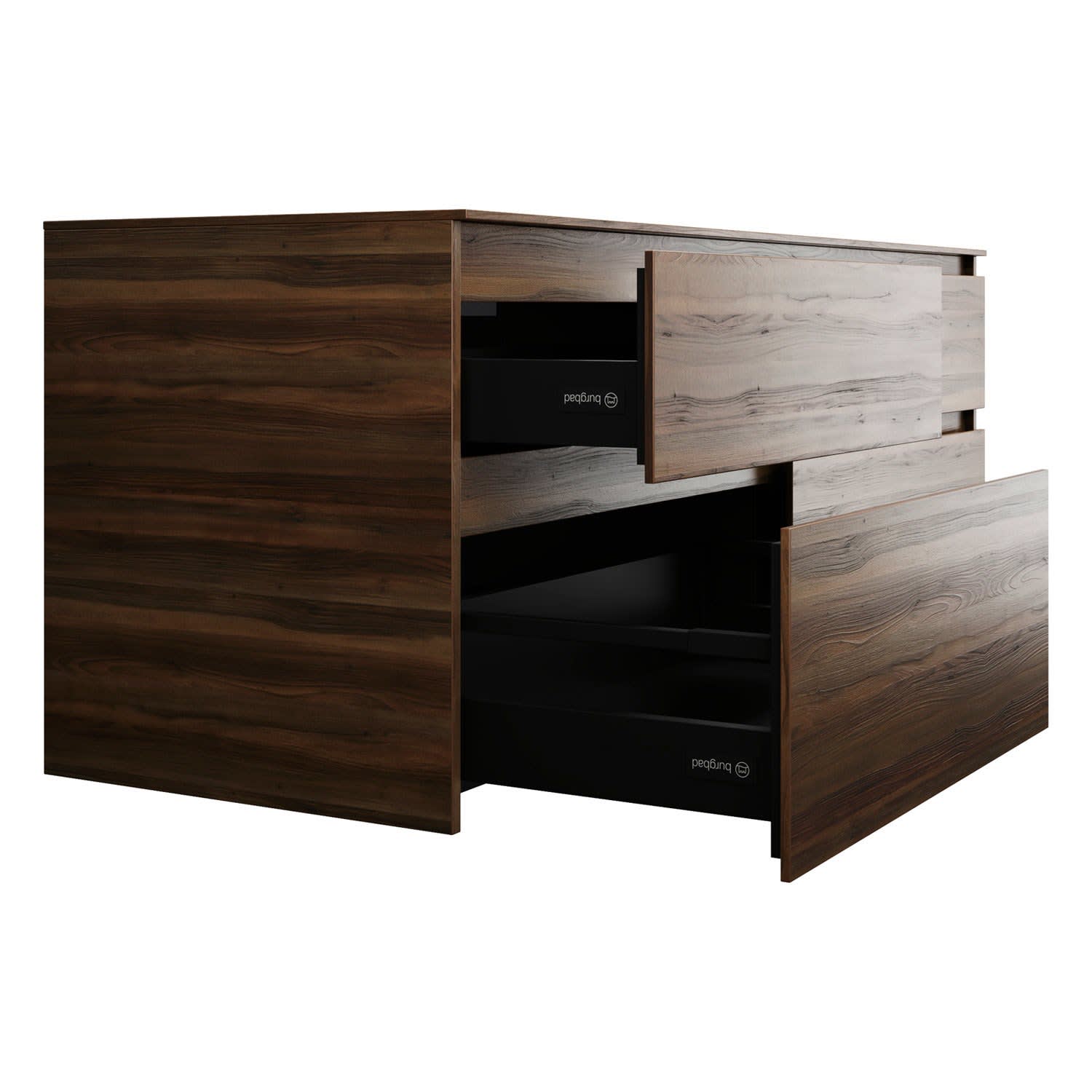 burgbad Lin20 Waschtischunterschrank mit Konsolenplatte 160 cm, 4 Auszüge, Beckenausschnitt rechts