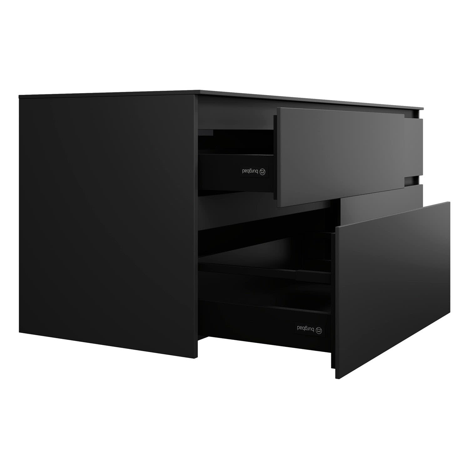- Vollauszug mit geräuscharmem Selbsteinzugsmechanismus inklusive Anschlagdämpfung (Silent System)