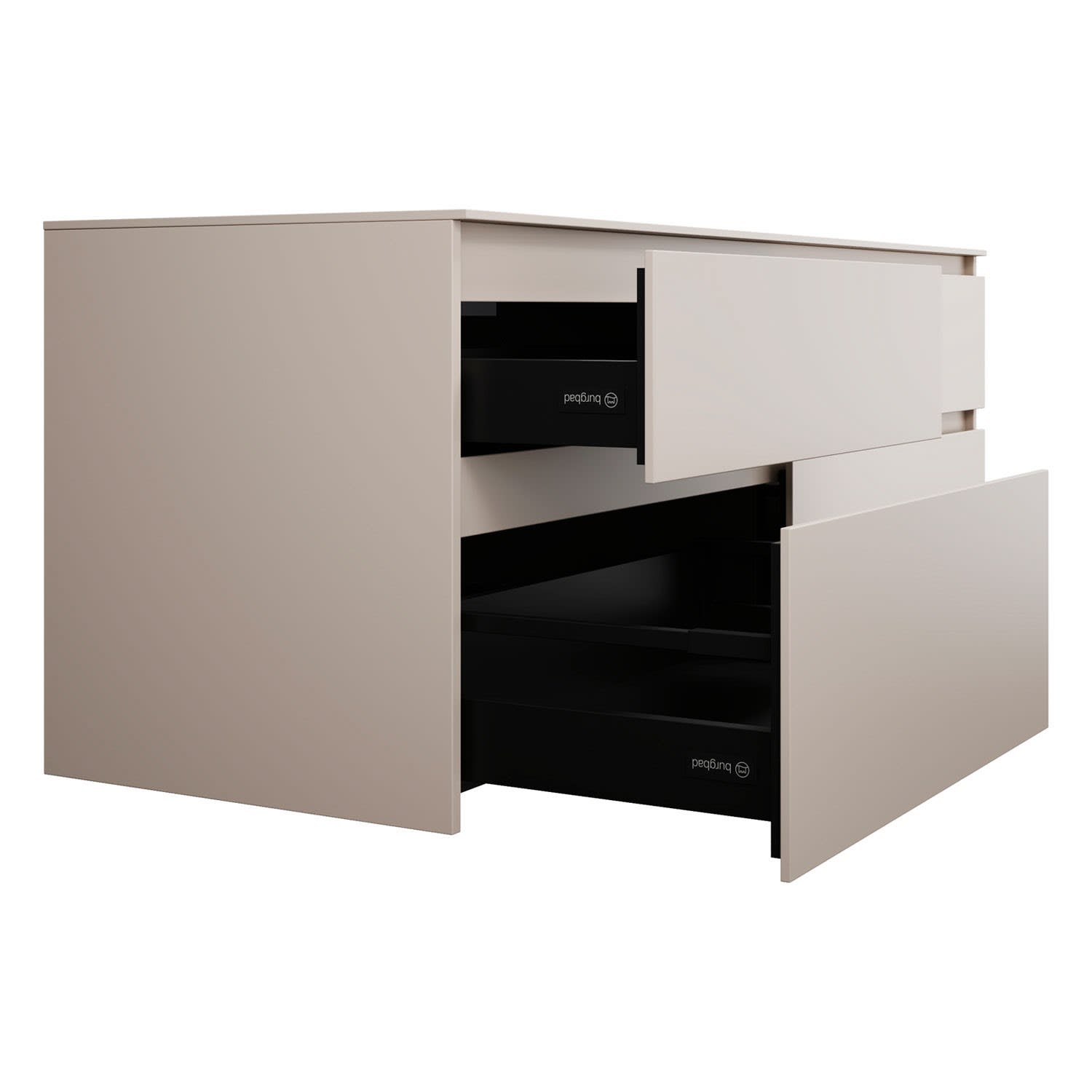 burgbad Lin20 Waschtischunterschrank mit Konsolenplatte 160 cm, 4 Auszüge, Beckenausschnitt rechts