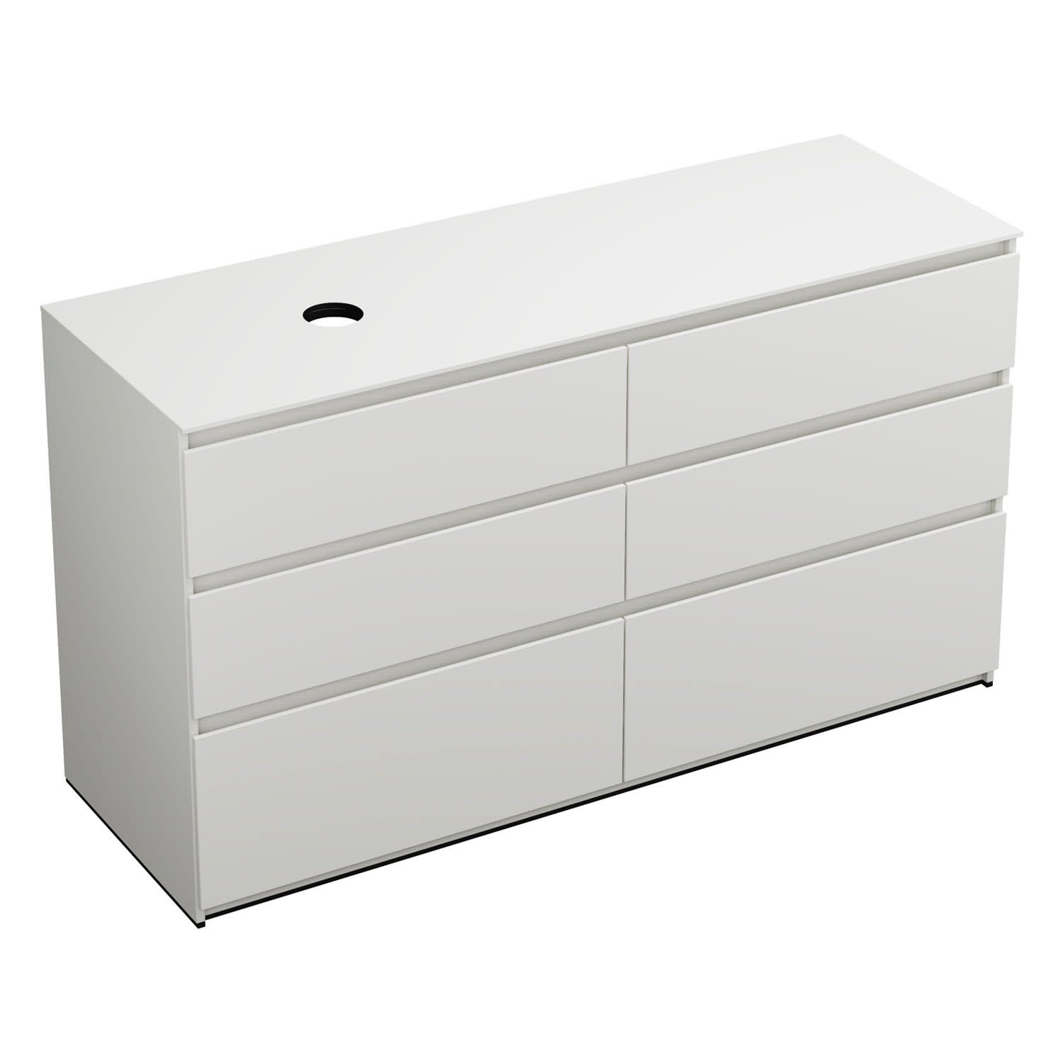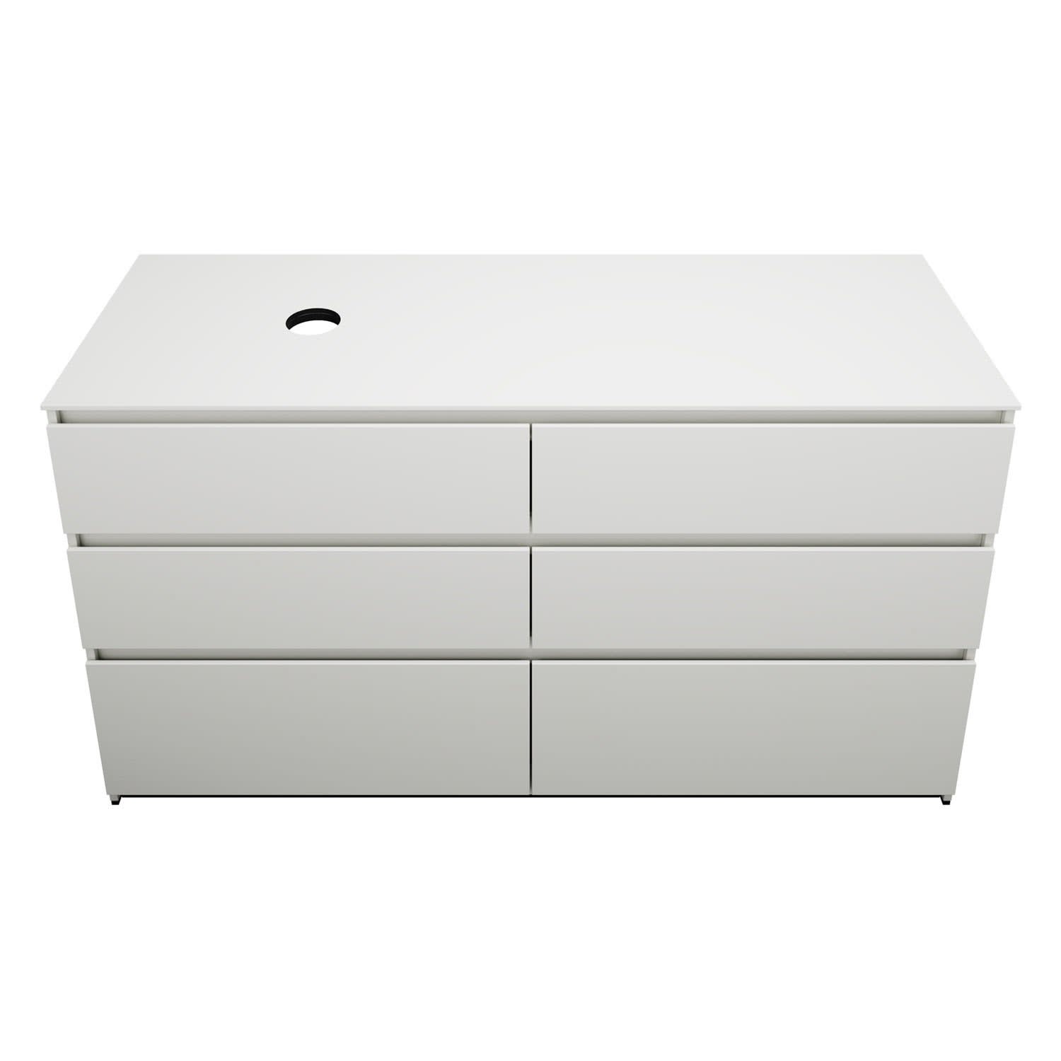 burgbad Lin20 Waschtischunterschrank mit Konsolenplatte 160 cm, 6 Auszüge, Beckenausschnitt links