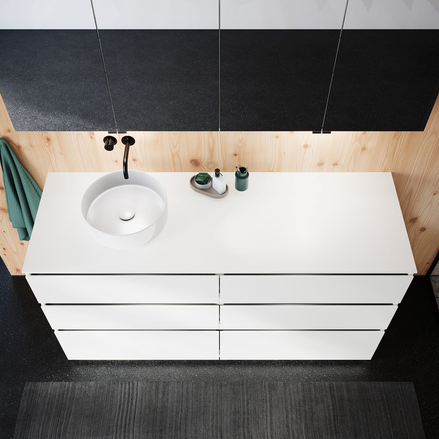 Die Waschtischplatte wird ohne Armaturbohrung geliefert. Armaturbohrungen müssen bauseits vorgenommen werden.