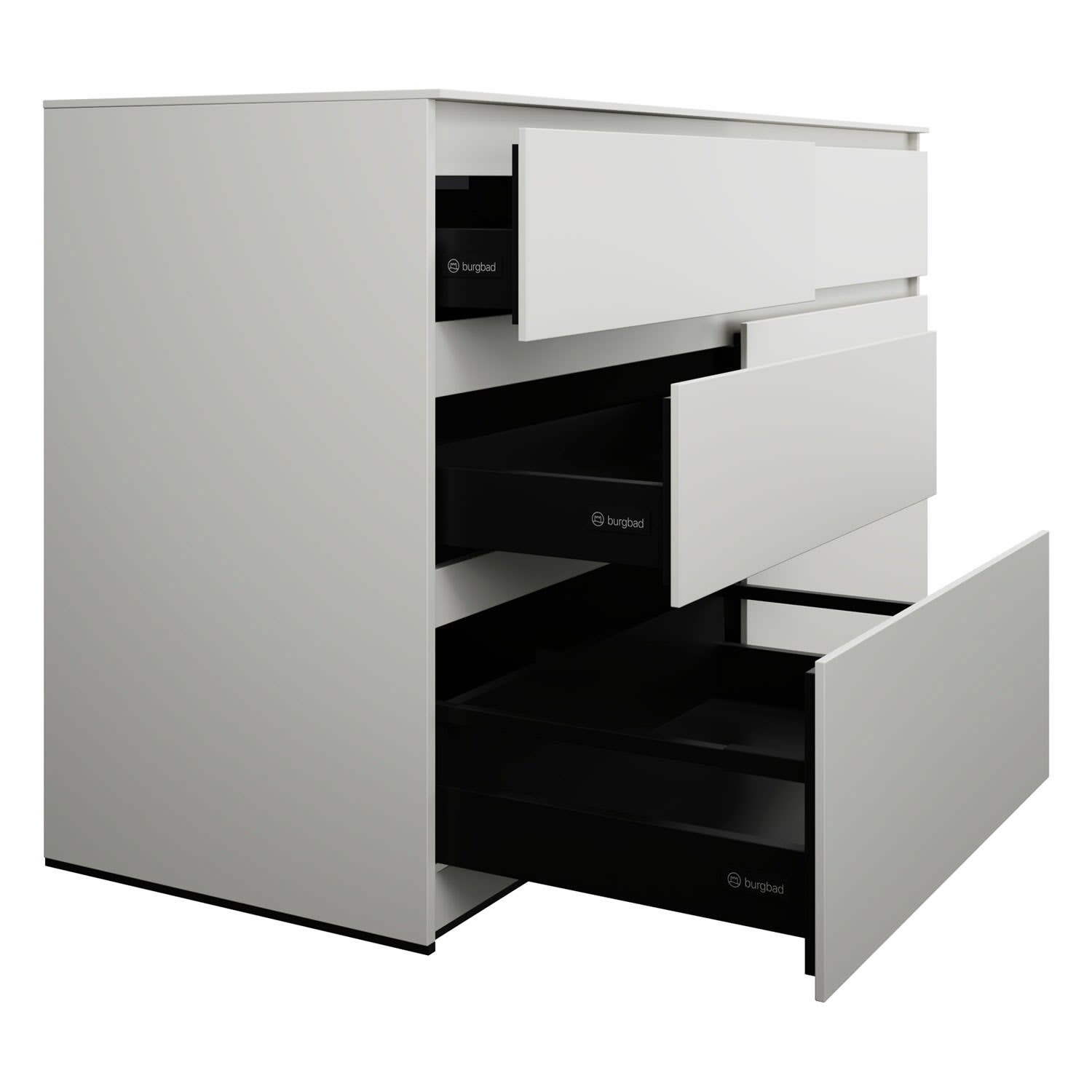 - Vollauszug mit geräuscharmem Selbsteinzugsmechanismus inklusive Anschlagdämpfung (Silent System)