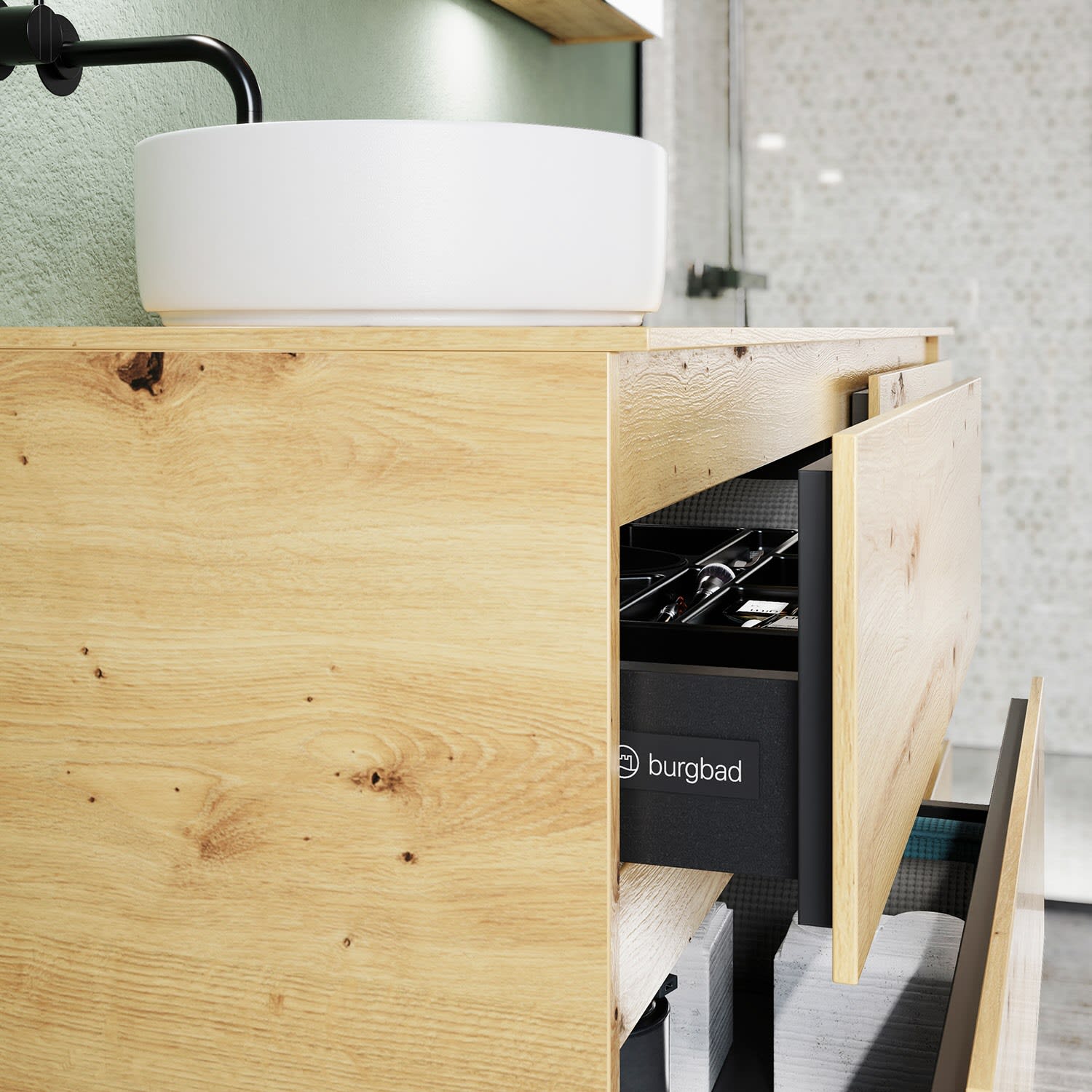 - inkl. Beckenausschnitt für Burgbad Aufsatzwaschtisch (siehe Bestellformular)