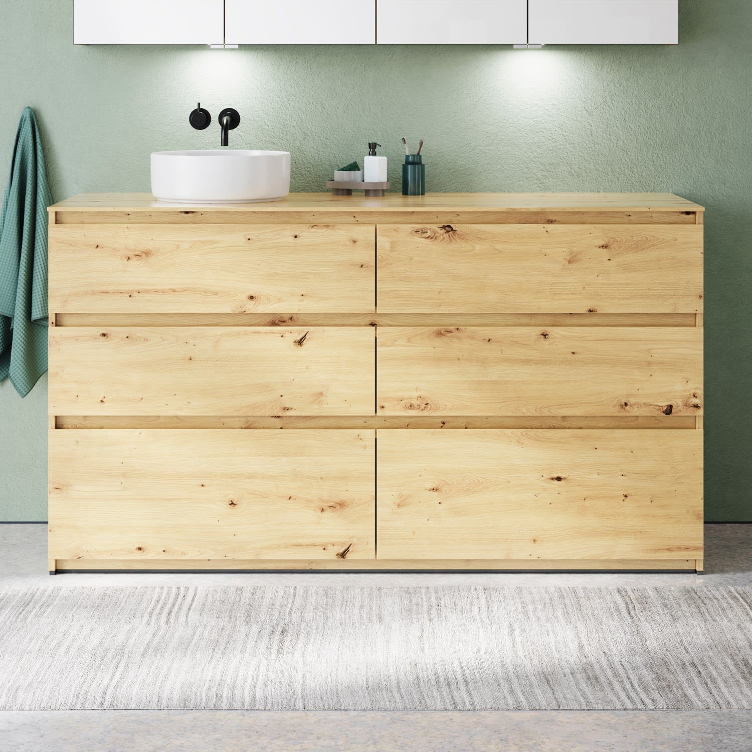 Die Waschtischplatte wird ohne Armaturbohrung geliefert. Armaturbohrungen müssen bauseits vorgenommen werden.
