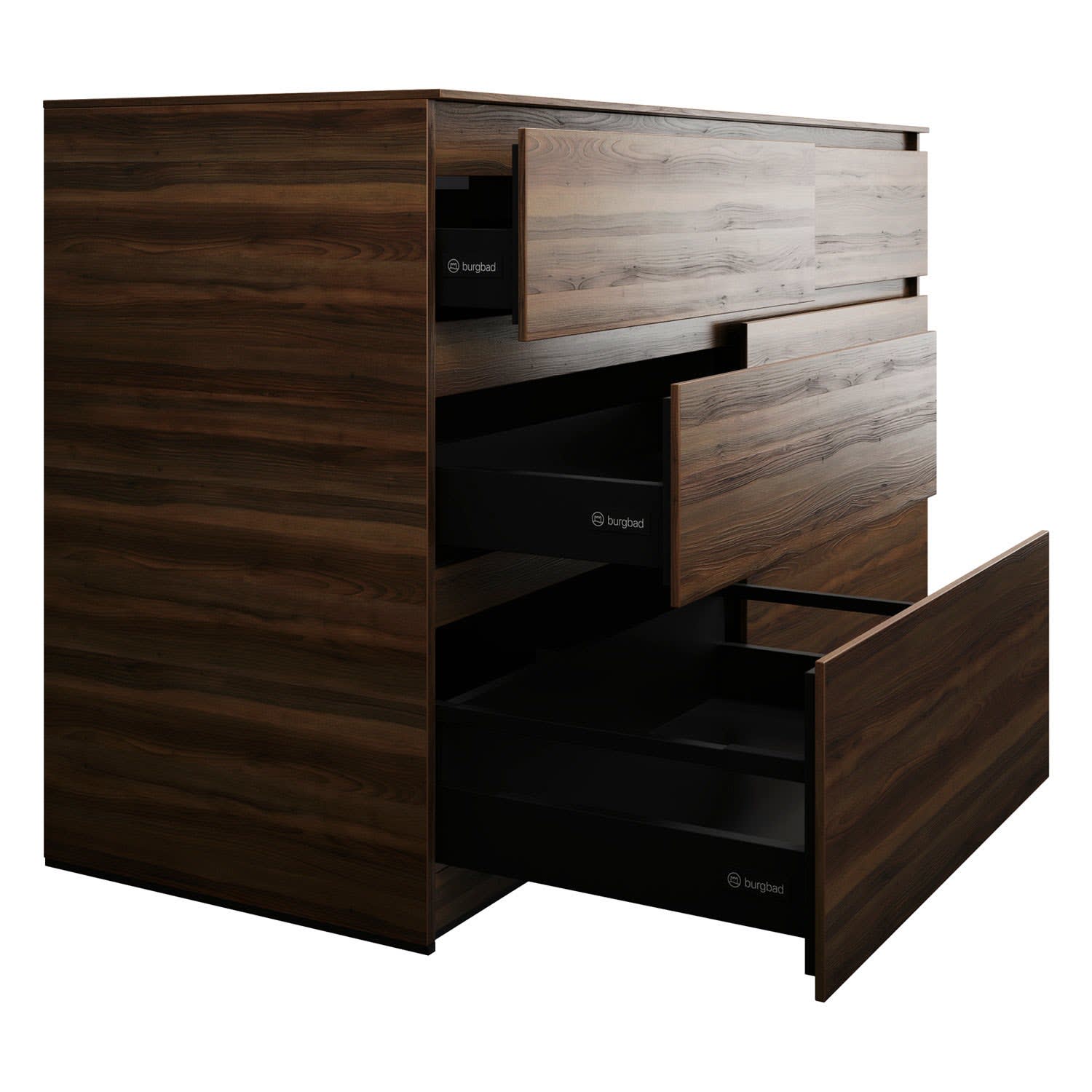 burgbad Lin20 Waschtischunterschrank mit Konsolenplatte 160 cm, 6 Auszüge, Beckenausschnitt links