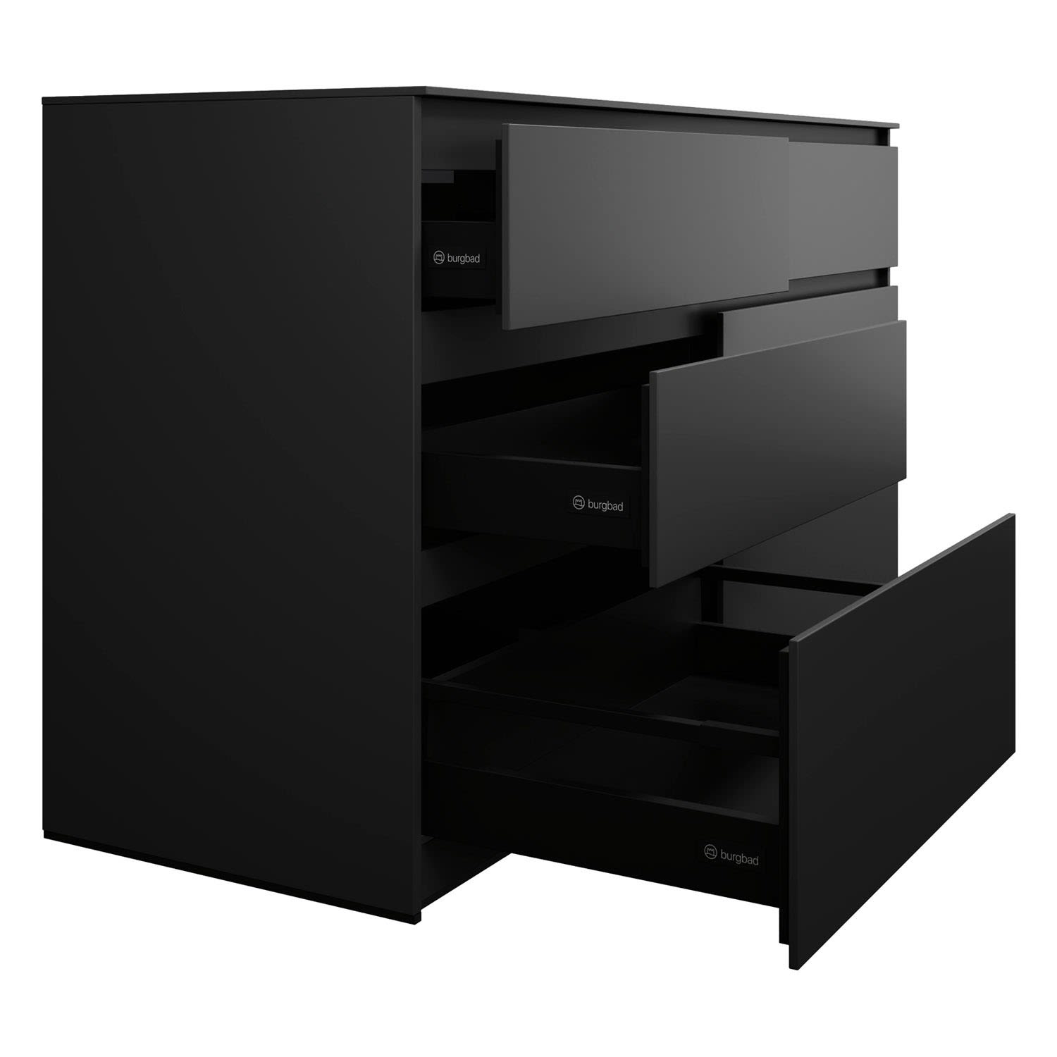 - Vollauszug mit geräuscharmem Selbsteinzugsmechanismus inklusive Anschlagdämpfung (Silent System)