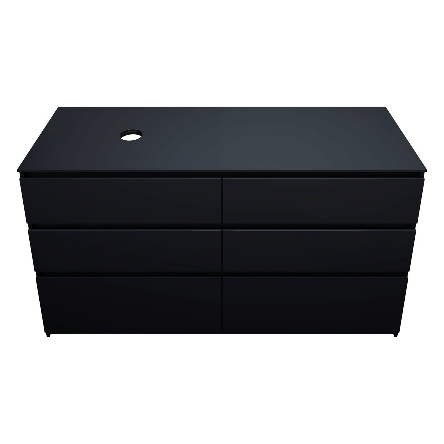 burgbad Lin20 Waschtischunterschrank mit Konsolenplatte 160 cm, 6 Auszüge, Beckenausschnitt links
