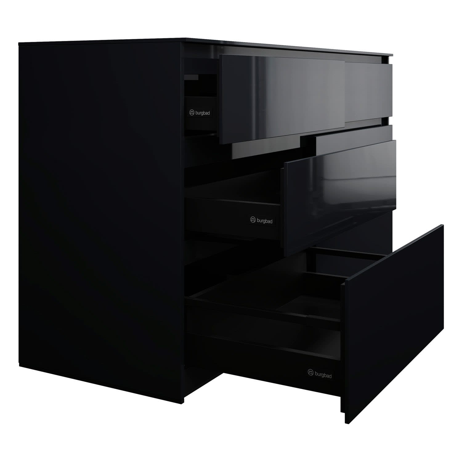 - Vollauszug mit geräuscharmem Selbsteinzugsmechanismus inklusive Anschlagdämpfung (Silent System)