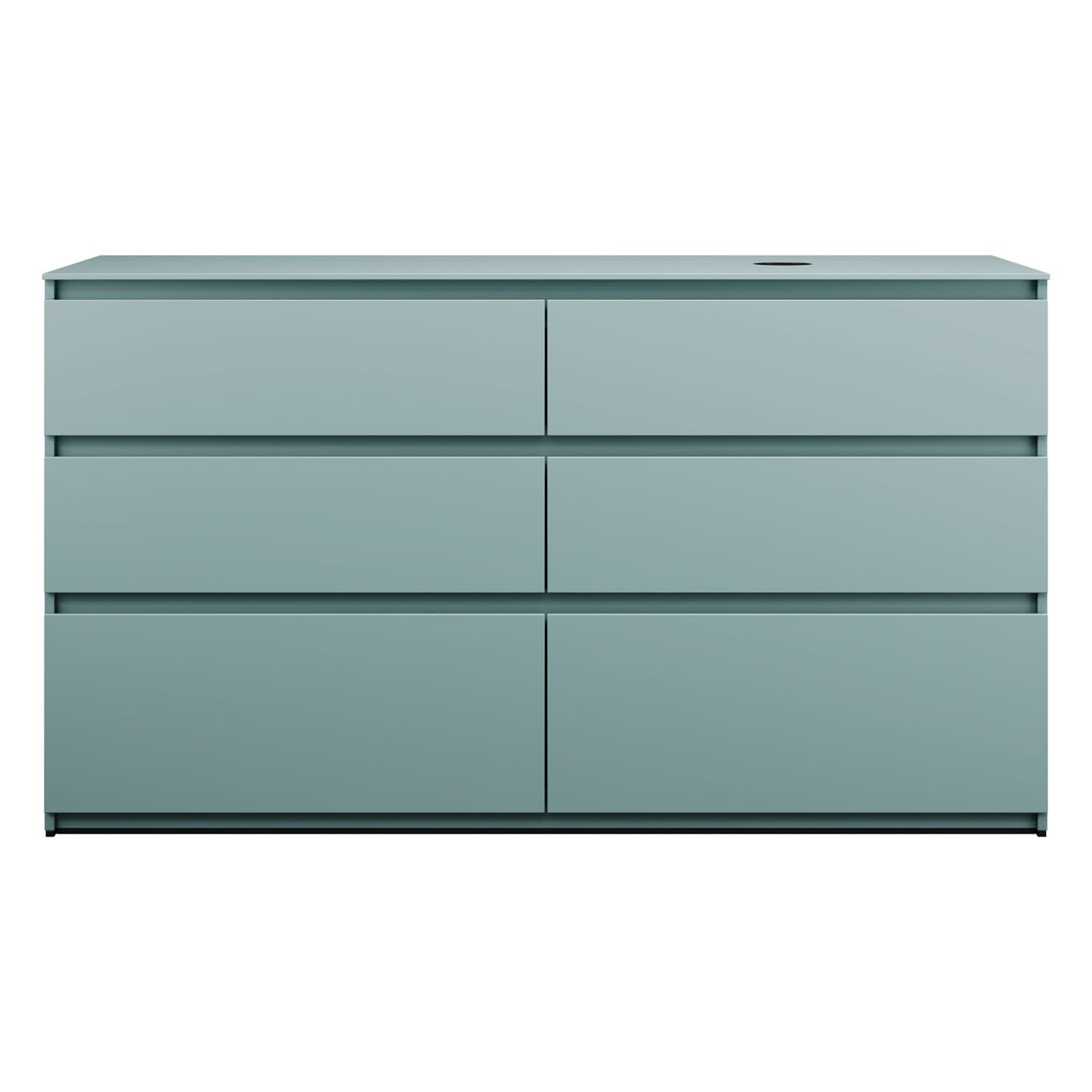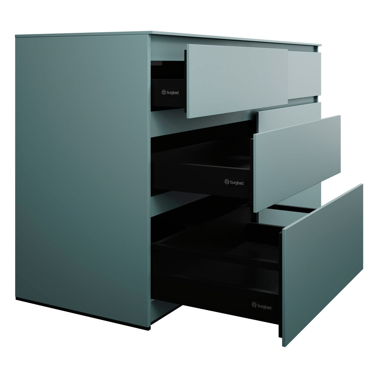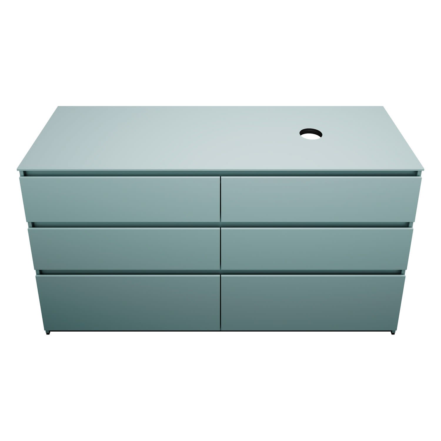 burgbad Lin20 Waschtischunterschrank mit Konsolenplatte 160 cm, 6 Auszüge, Beckenausschnitt rechts