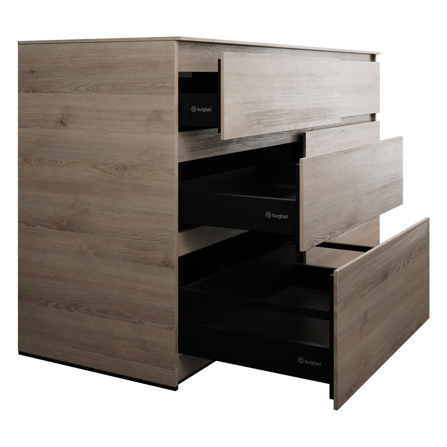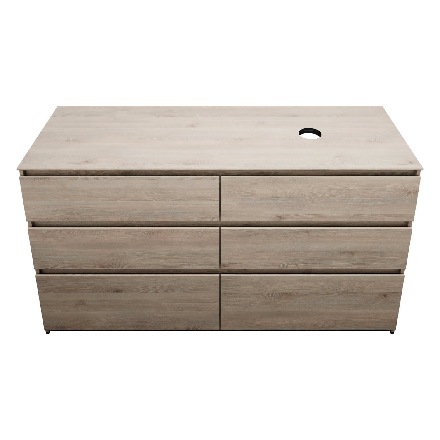 burgbad Lin20 Waschtischunterschrank mit Konsolenplatte 160 cm, 6 Auszüge, Beckenausschnitt rechts