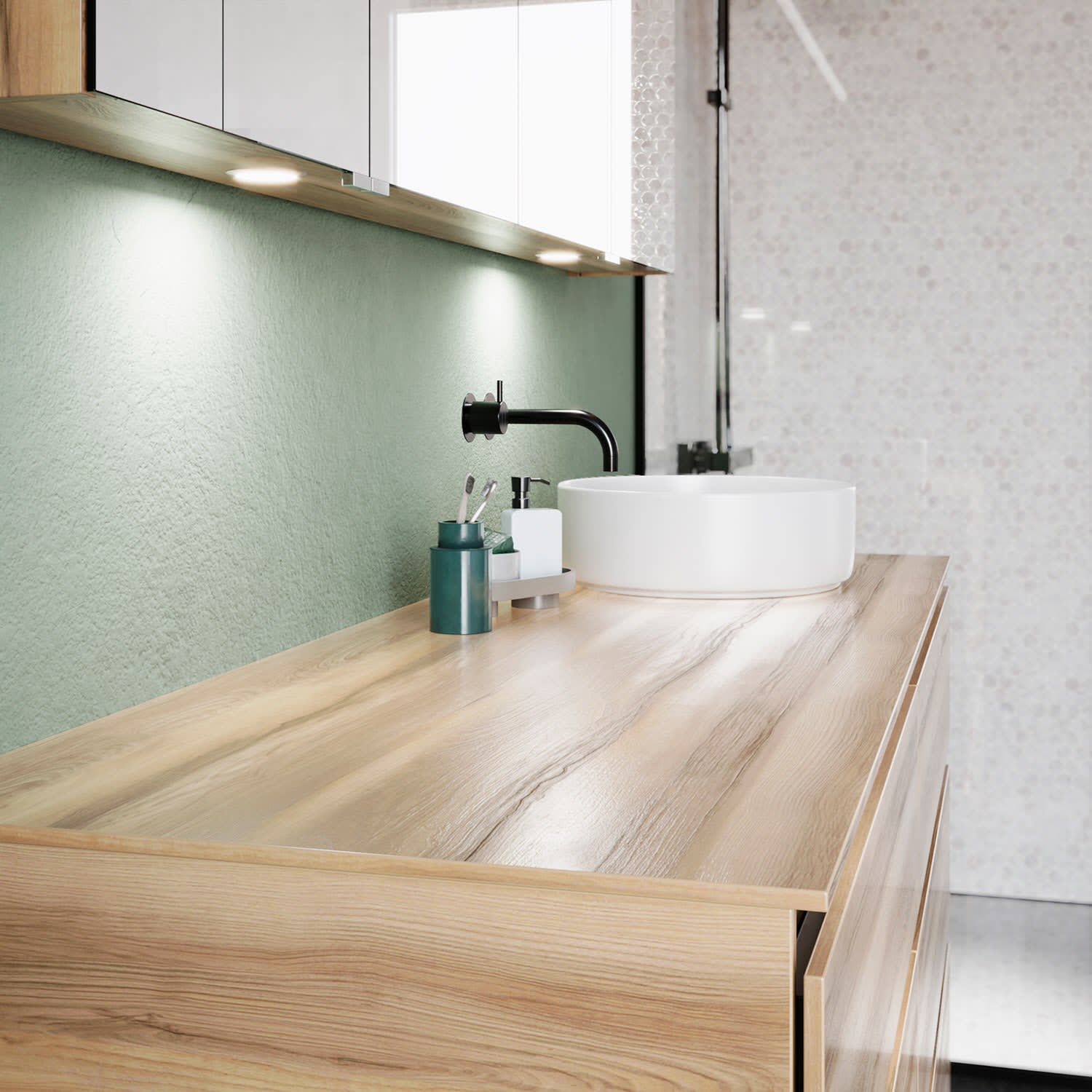 Die Waschtischplatte wird ohne Armaturbohrung geliefert. Armaturbohrungen müssen bauseits vorgenommen werden.