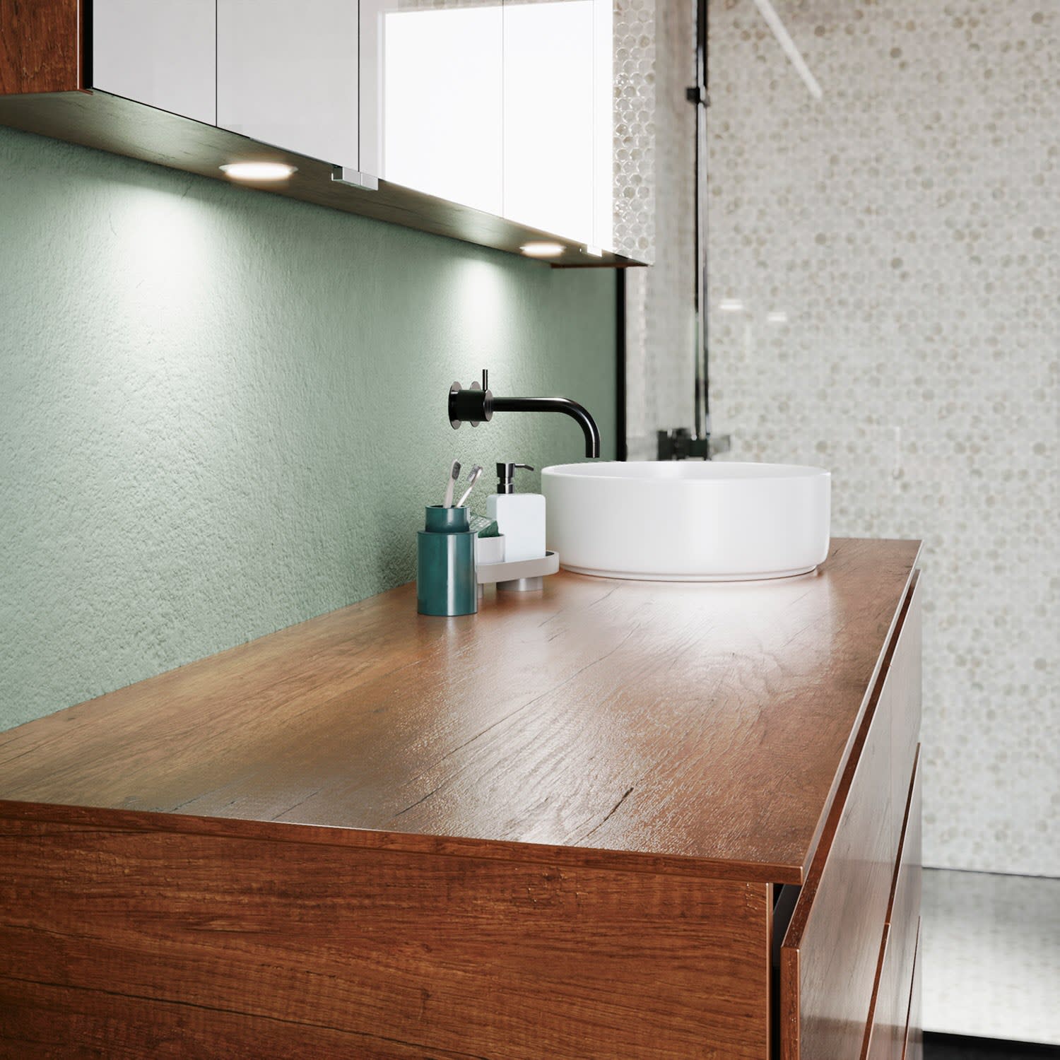 Die Waschtischplatte wird ohne Armaturbohrung geliefert. Armaturbohrungen müssen bauseits vorgenommen werden.