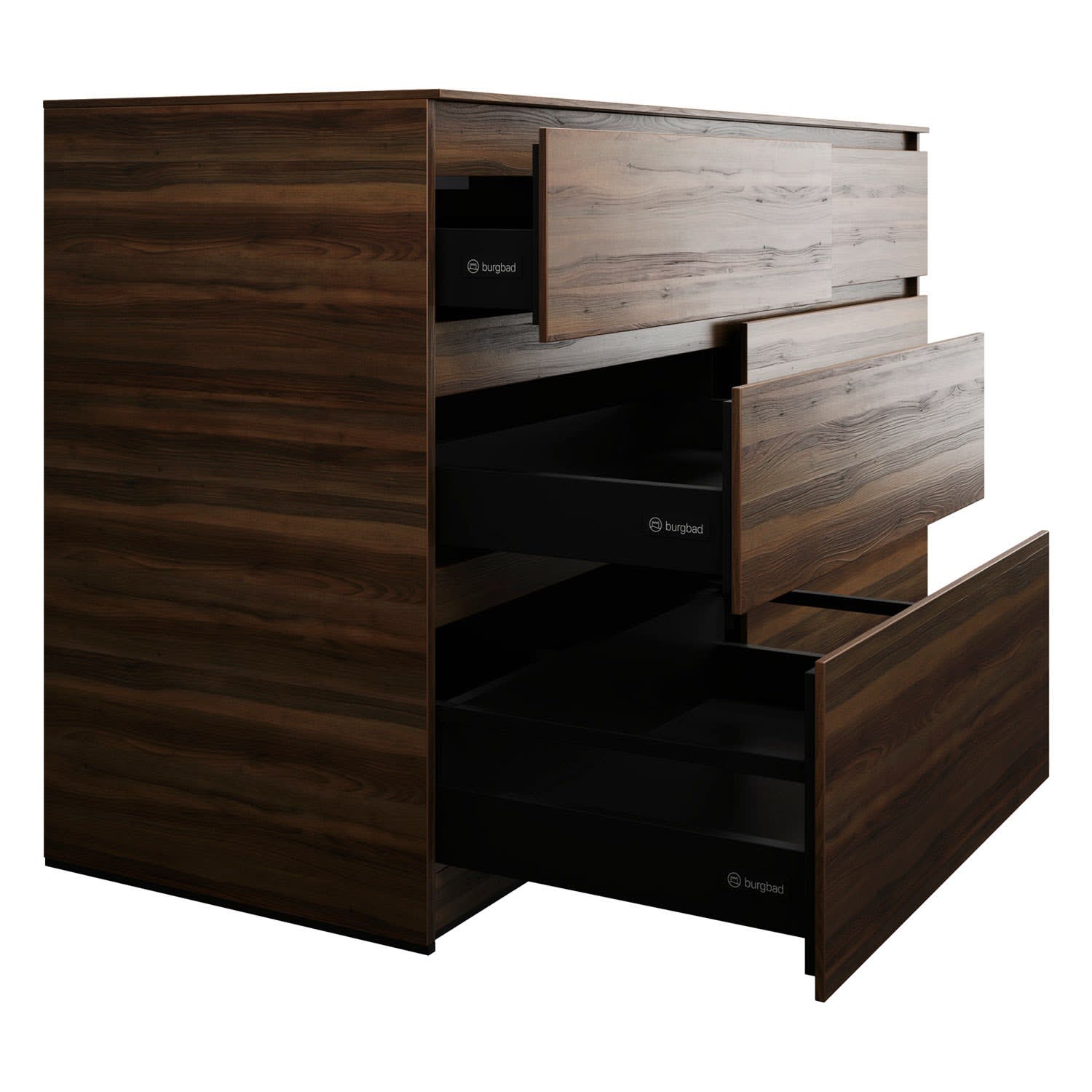 - 2 Auszüge oben H: 22 T: 35 cm, 1x mit Siphonausschnitt und Inneneinteilung