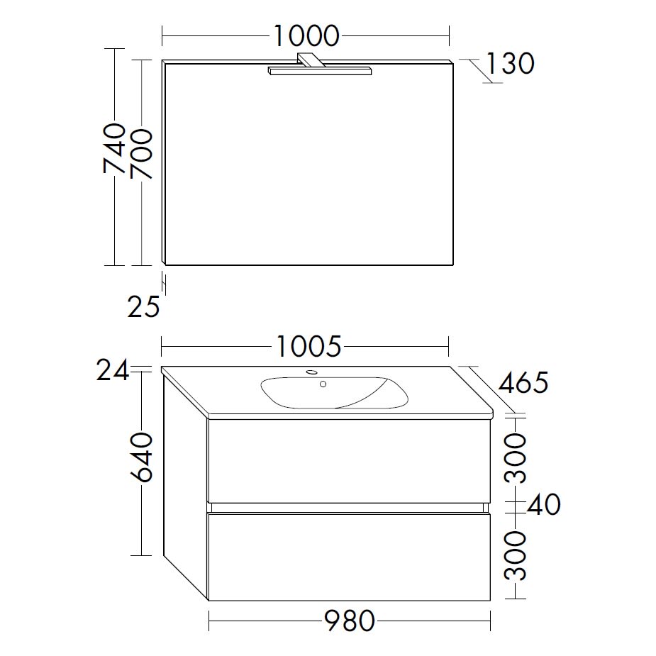 - B: 100,5 T: 46,5 H: 2,4 cm