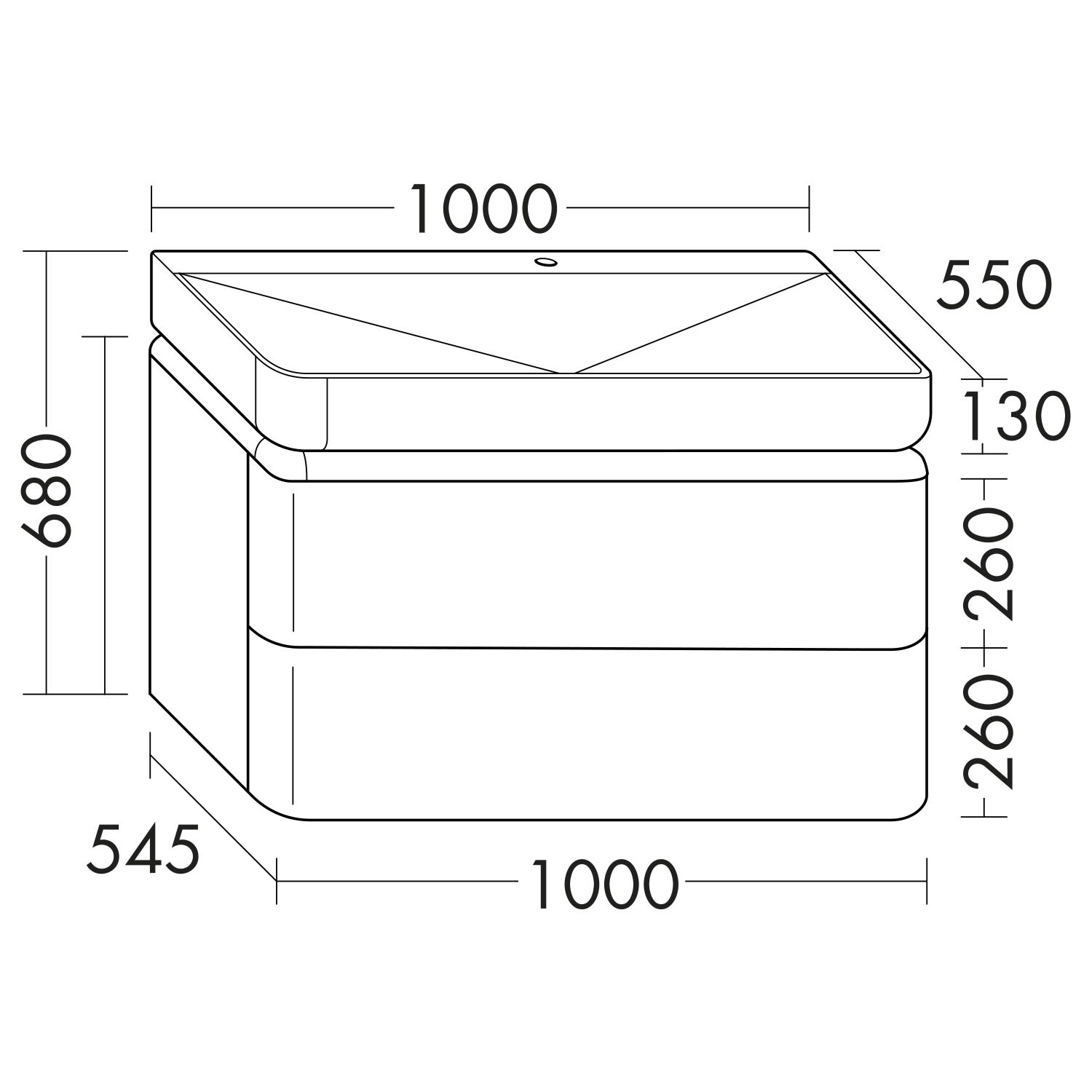 burgbad b:me Waschtischunterschrank mit Mineralguss-Waschtisch 100 cm, 2 Auszüge