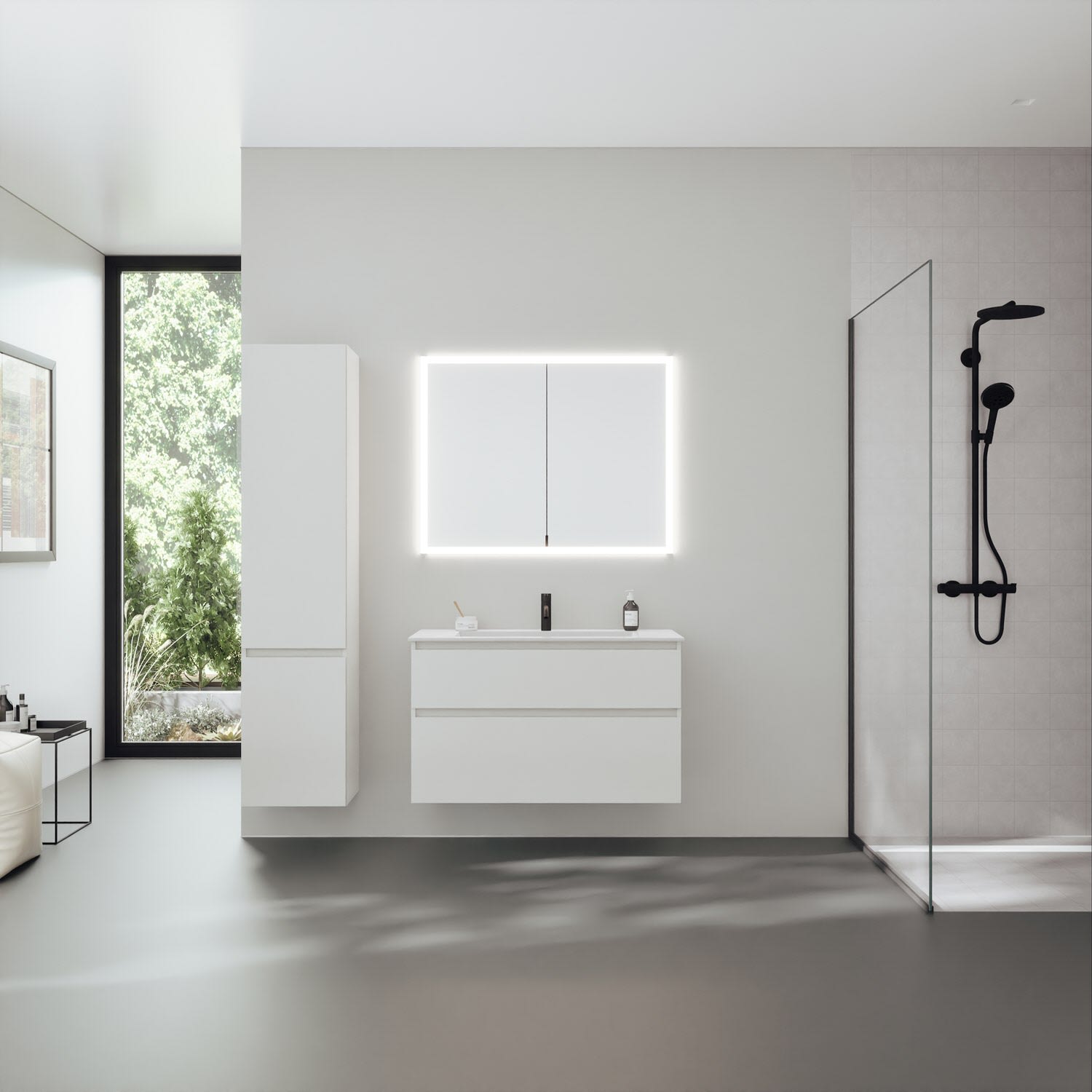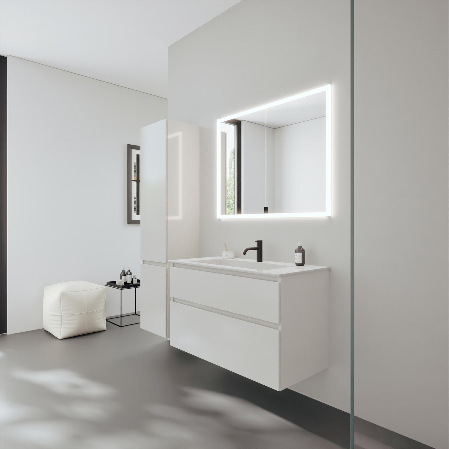 burgbad Iveo Waschtischkombination mit Keramik-Waschtisch und LED-Beleuchtung 100 cm Version Links
