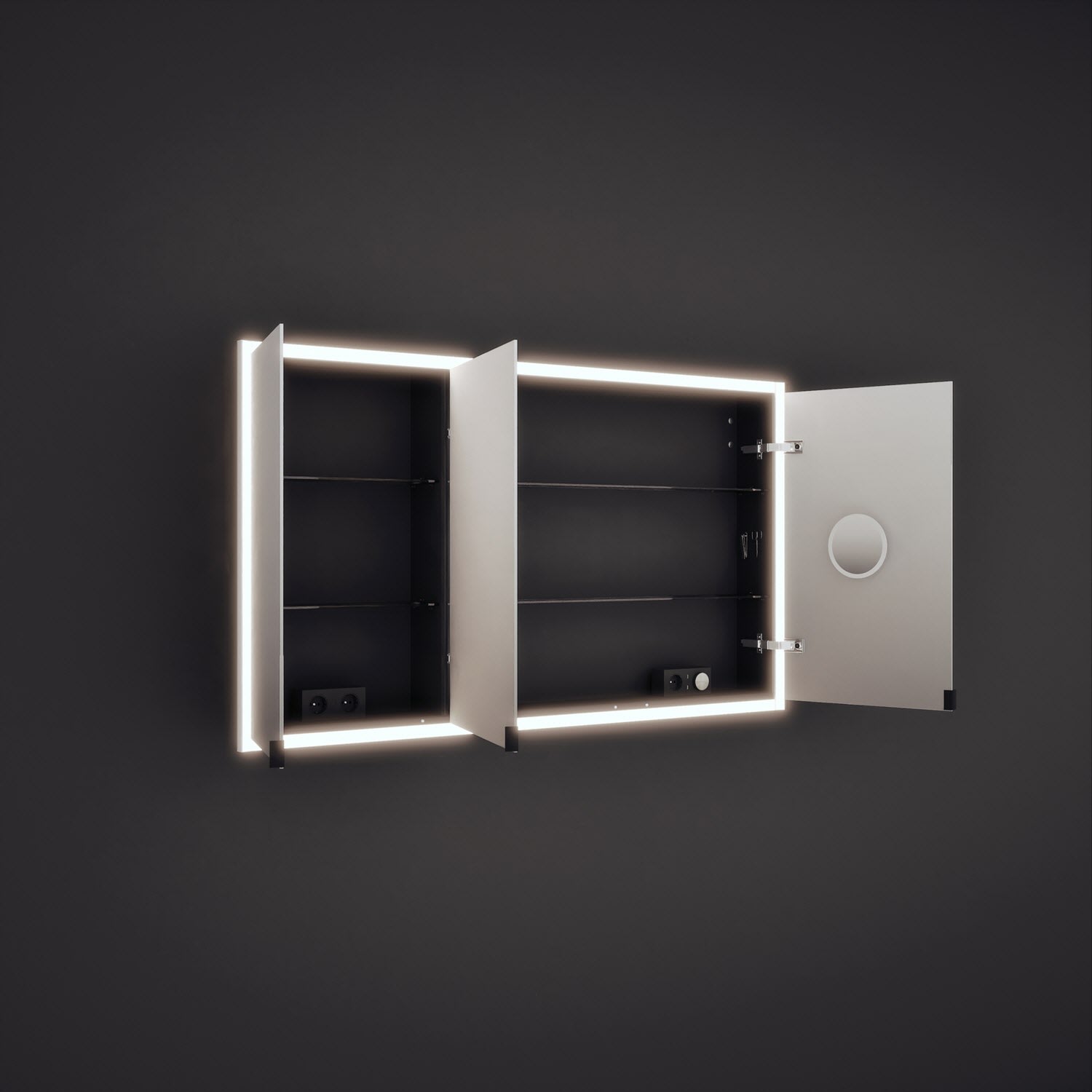 - 3 Spiegeltüren beidseitig verspiegelt