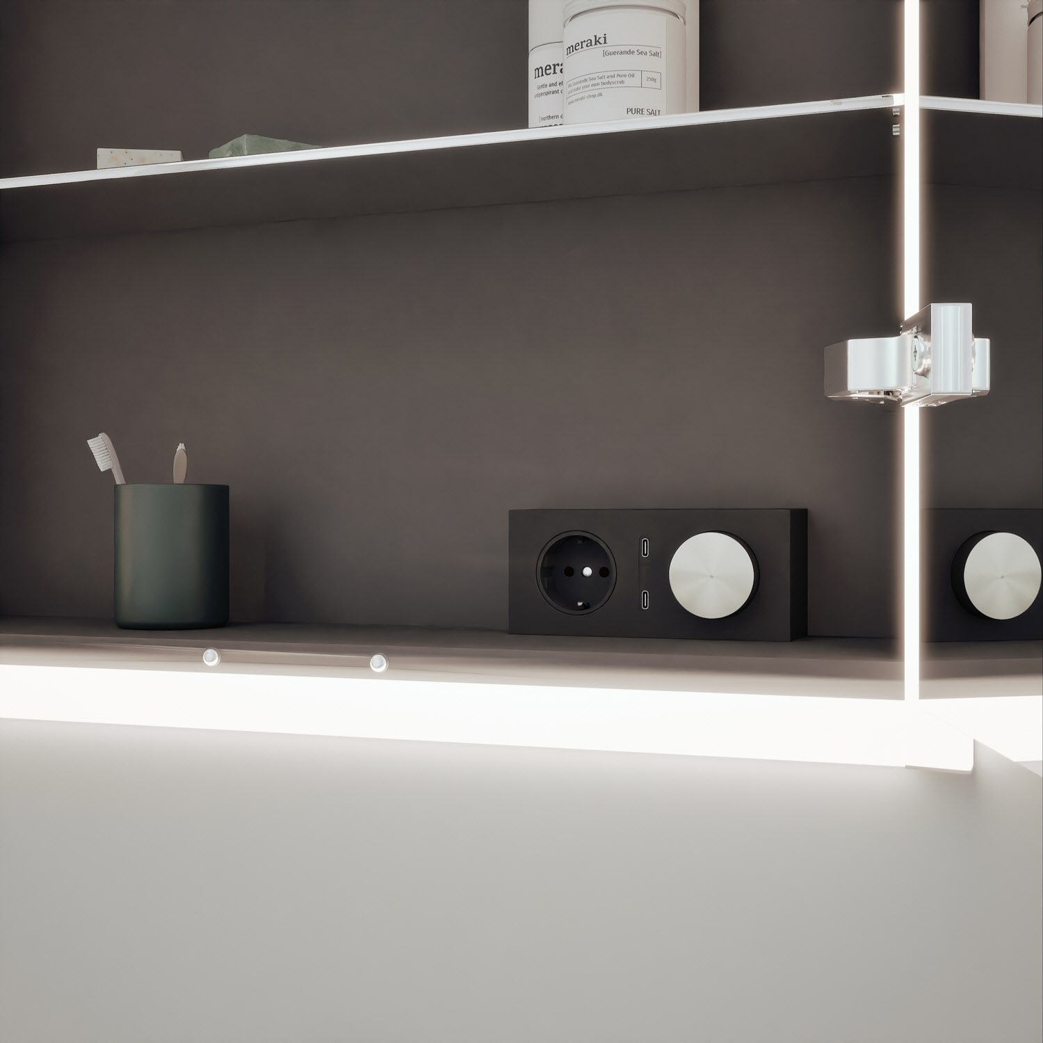 - Schalter-/Steckdosenelement rechts mit 2 USB-C-Ports
