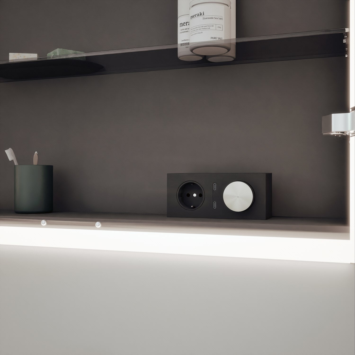 - Schalter-/Steckdosenelement rechts mit 2 USB-C-Ports