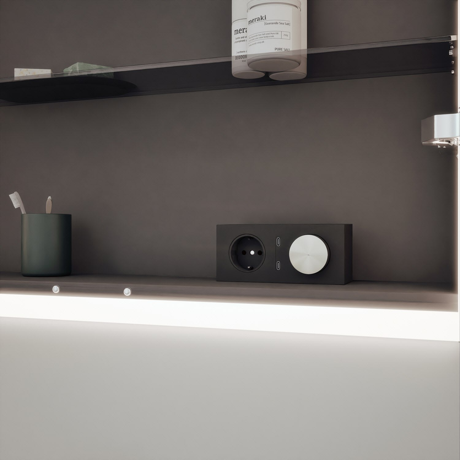 - Schalter-/Steckdosenelement rechts mit 2 USB-C-Ports