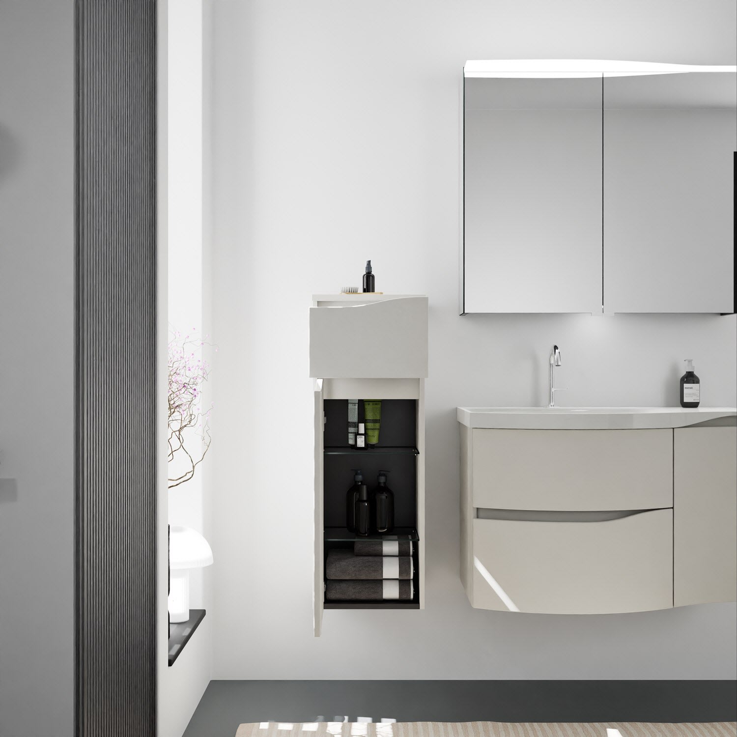 burgbad Sinea 3.0 Halbhoher Schrank 35 x 34 x 96 cm, 1 Schublade, 1 Tür, Anschlag links, mit Griffleiste G0167