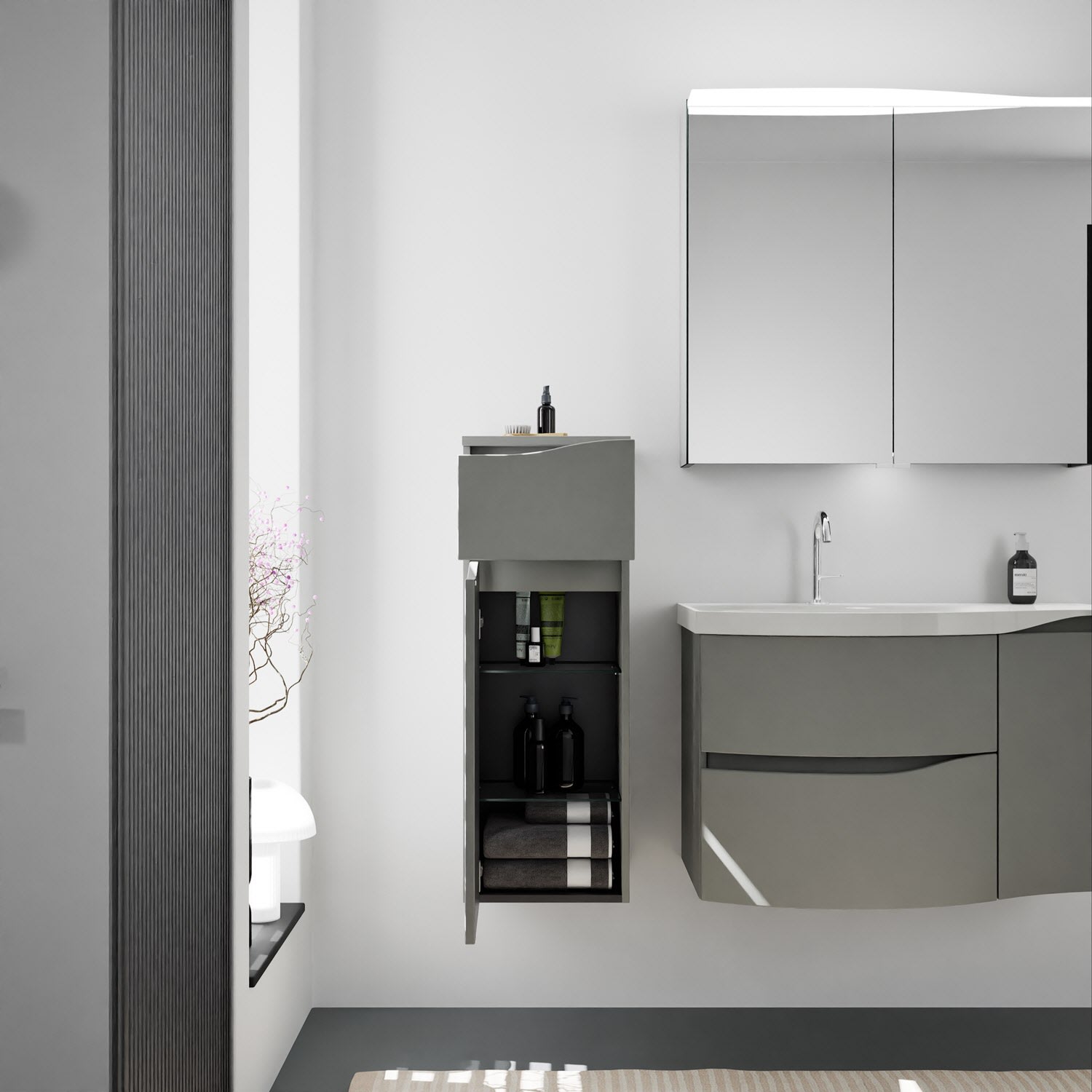burgbad Sinea 3.0 Halbhoher Schrank 35 x 34 x 96 cm, 1 Schublade, 1 Tür, Anschlag links, mit Griffleiste G0167