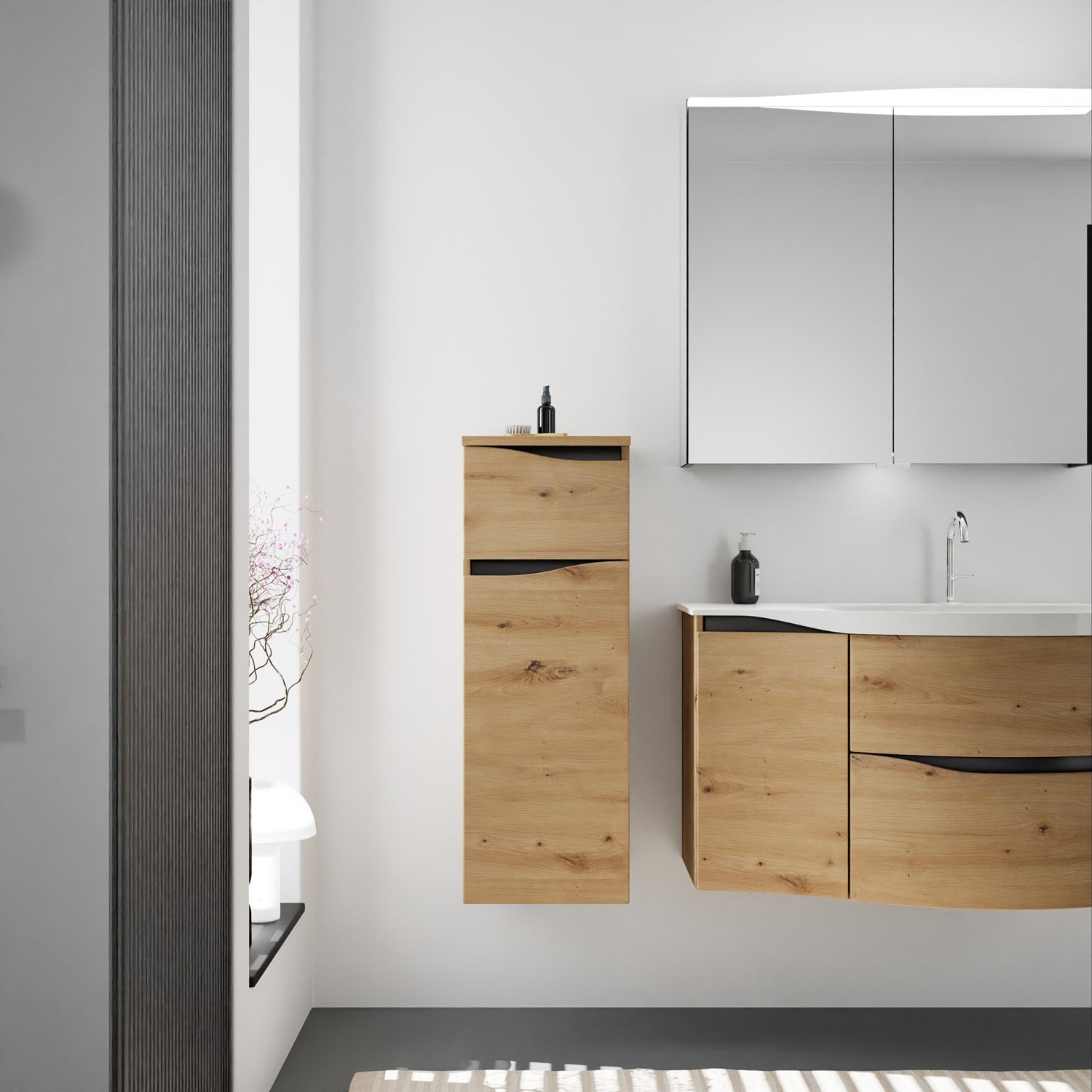 burgbad Sinea 3.0 Halbhoher Schrank 35 x 34 x 96 cm, 1 Schublade, 1 Tür, Anschlag rechts, mit Griffleiste G0292