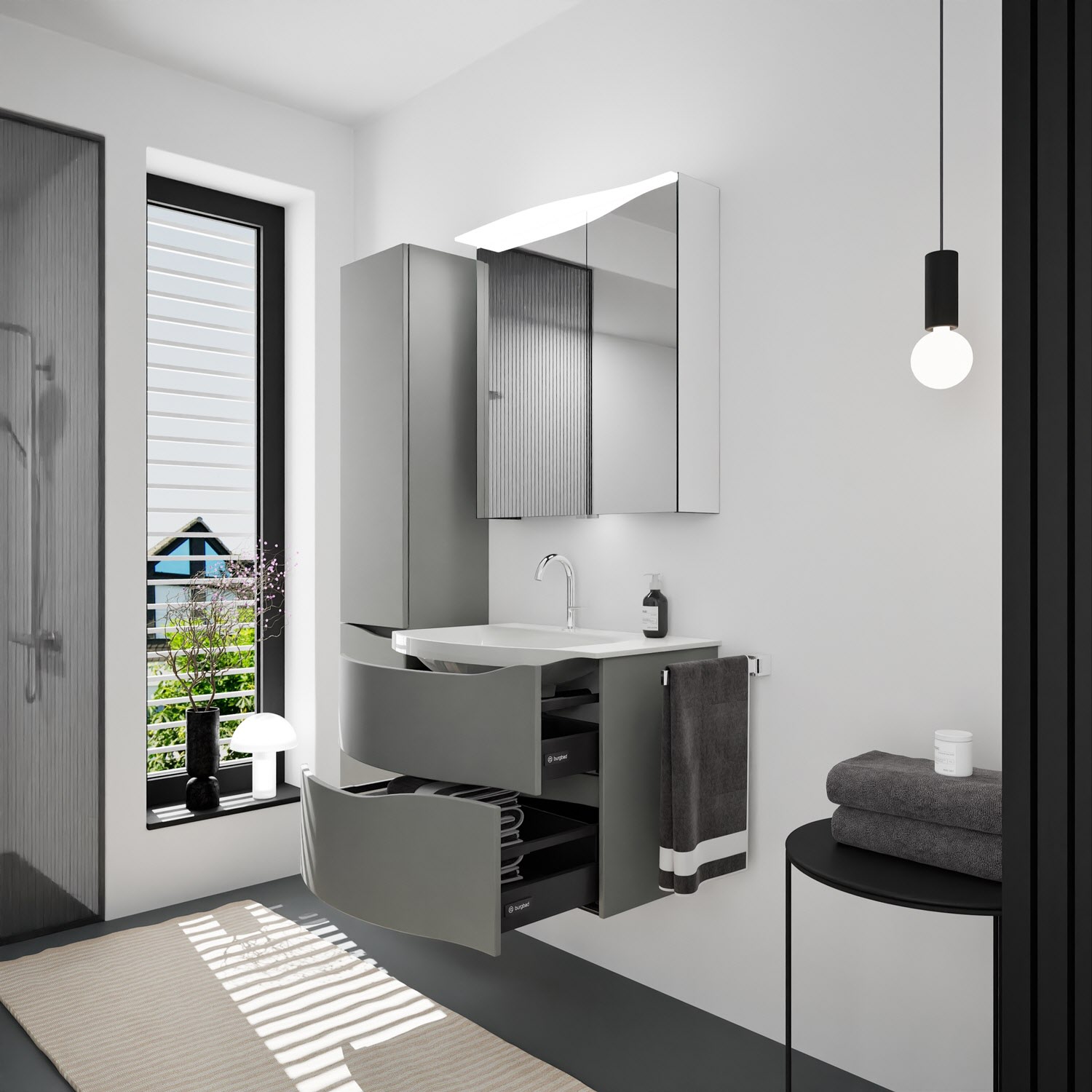 burgbad Sinea 3.0 Mineralguss-Waschtisch mit Unterschrank, 77 cm, mit Griffleiste G0167