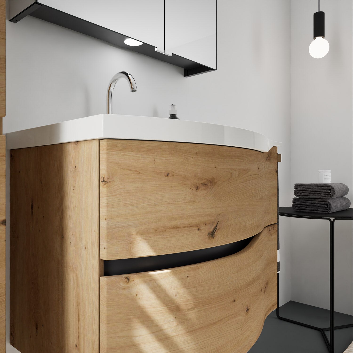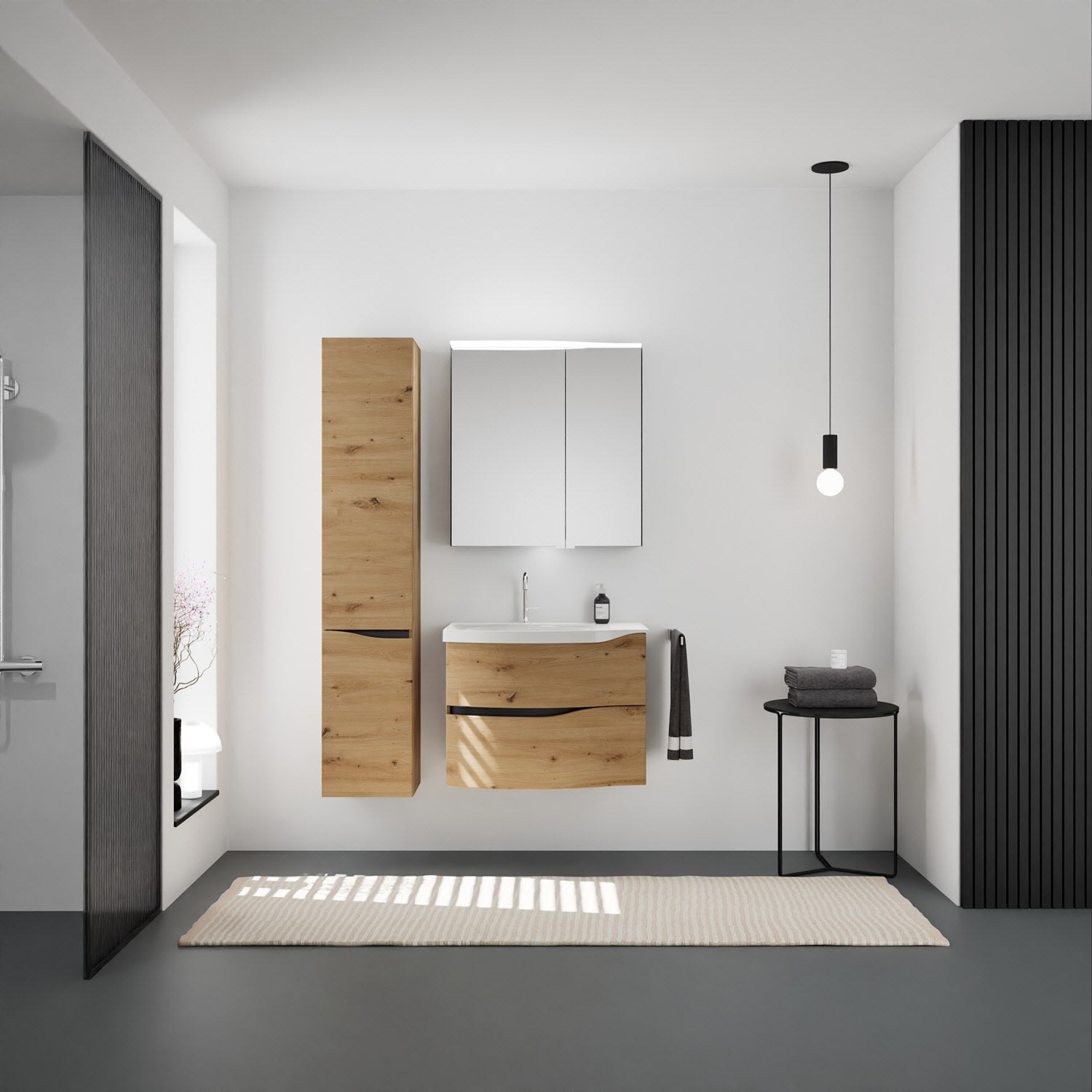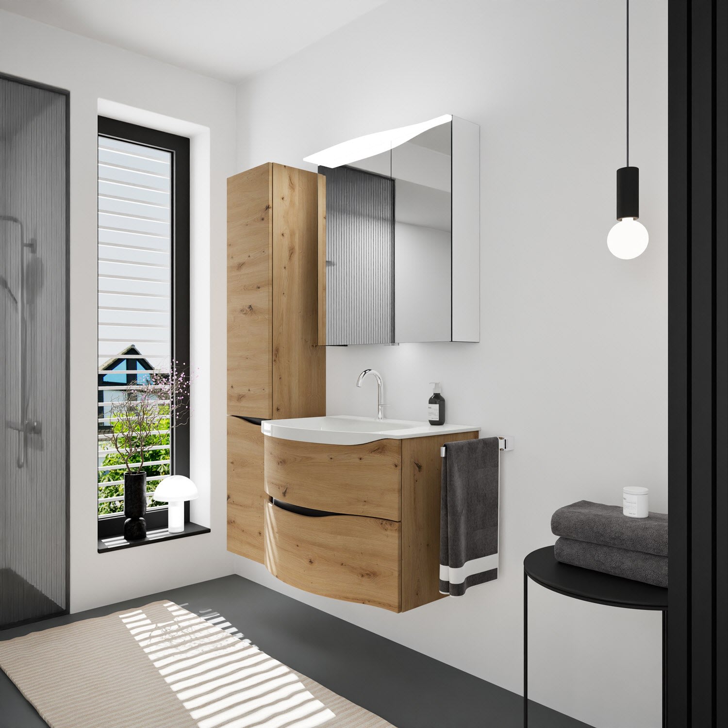 burgbad Sinea 3.0 Mineralguss-Waschtisch mit Unterschrank, 77 cm, mit Griffleiste G0292