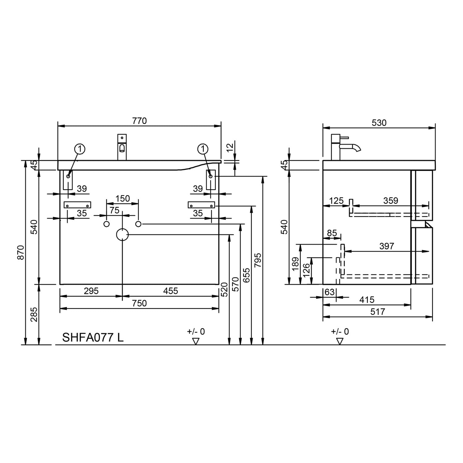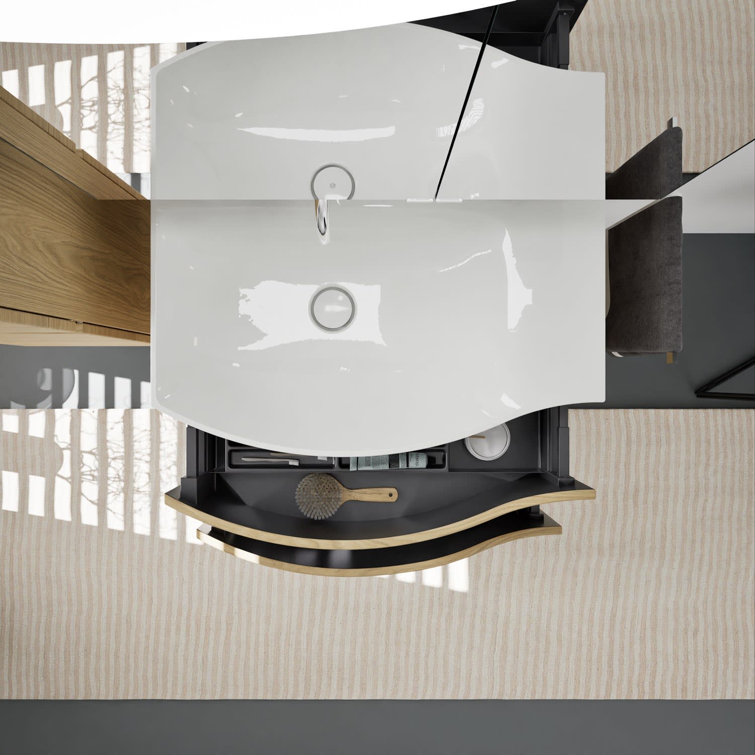 - 1 Schublade oben, mit Siphonausschnitt und Inneneinteilung