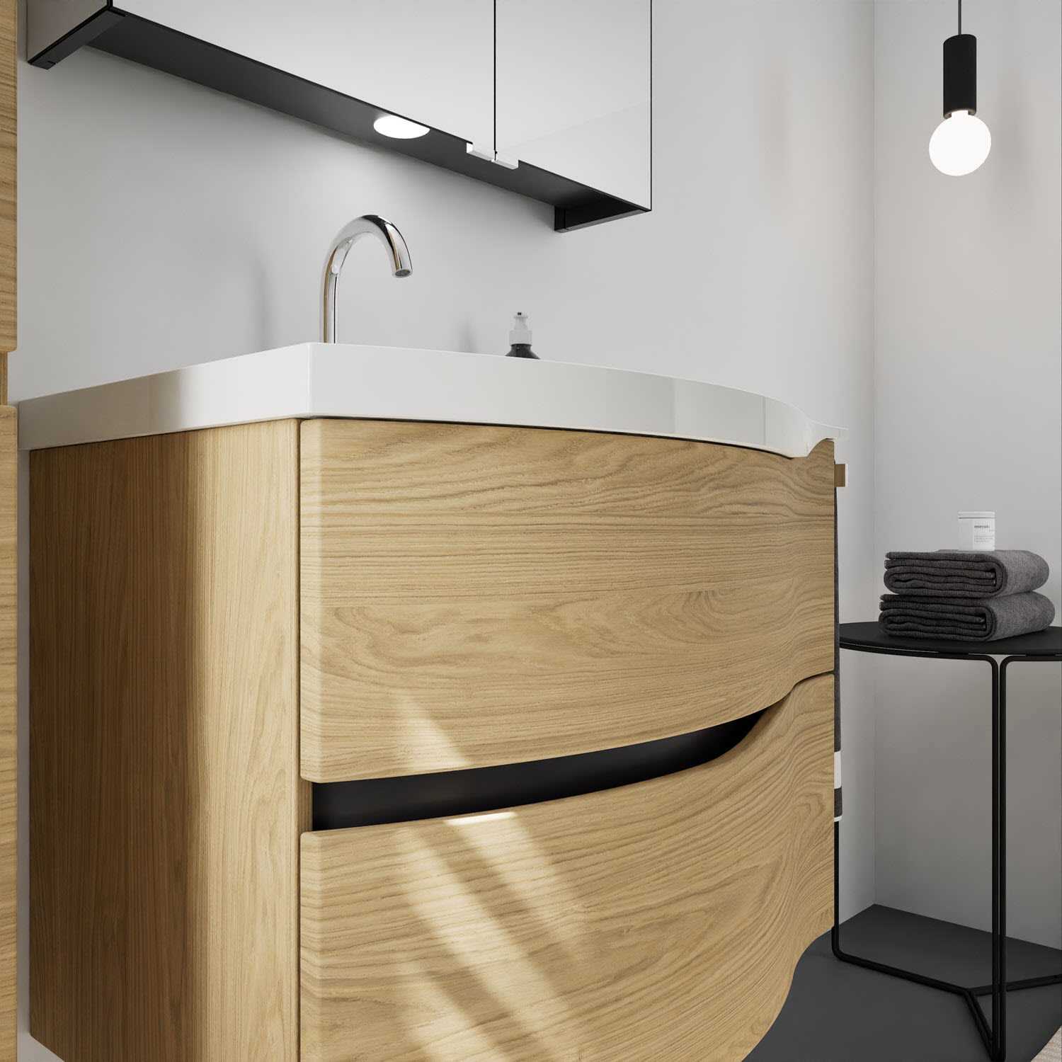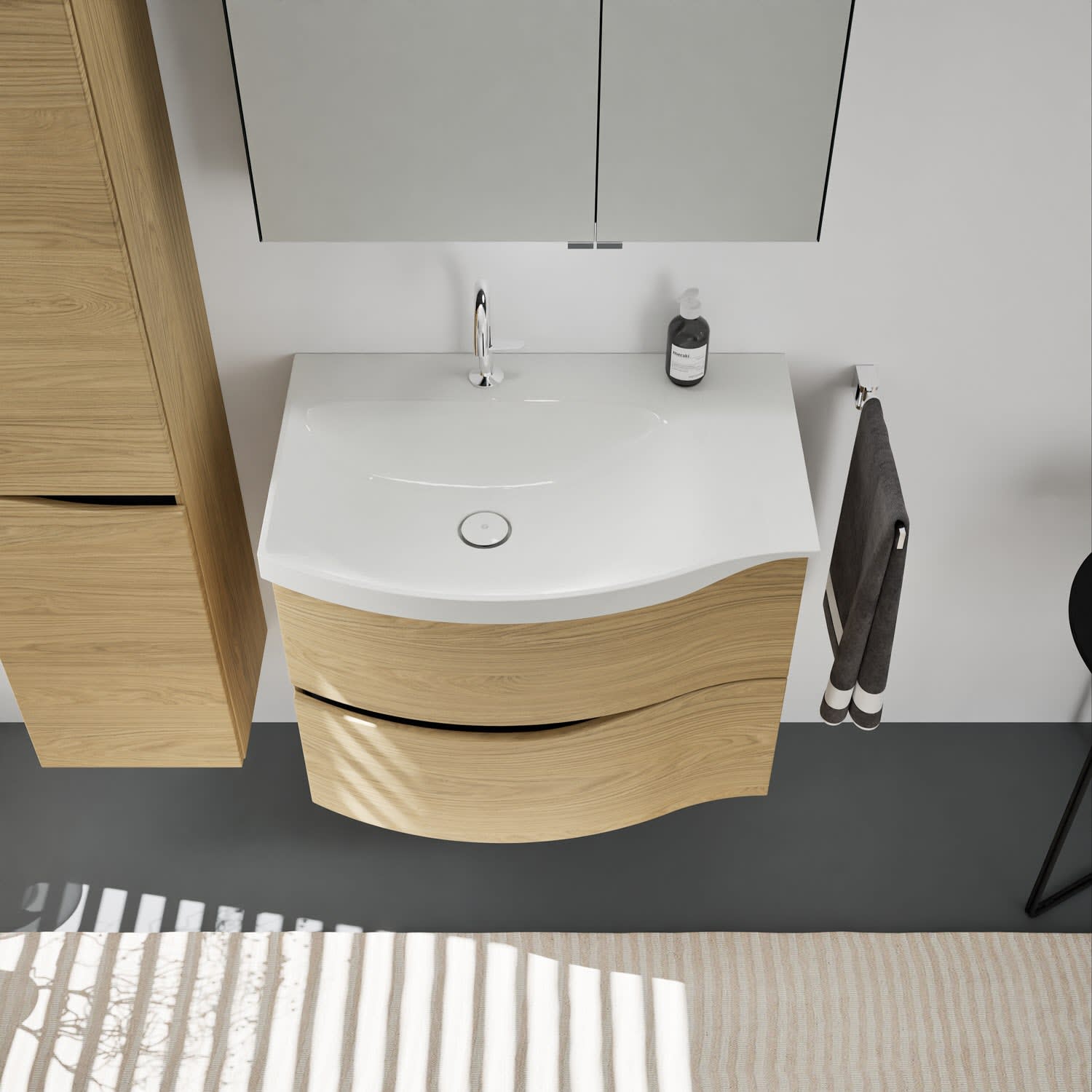 burgbad Sinea 3.0 Mineralguss-Waschtisch mit Unterschrank, 77 cm, mit Griffleiste G0292