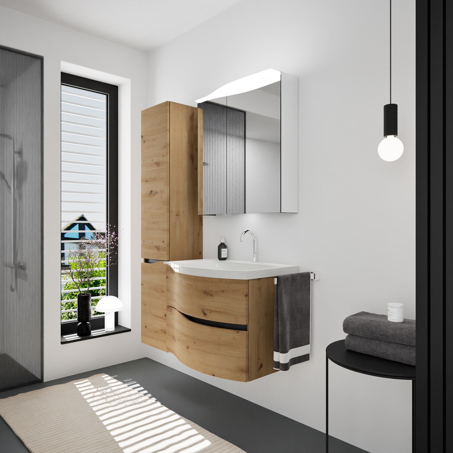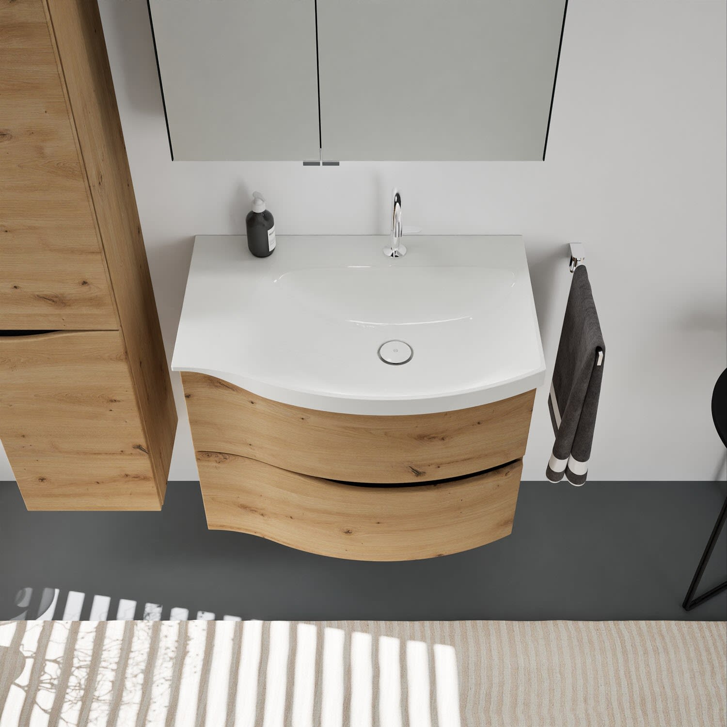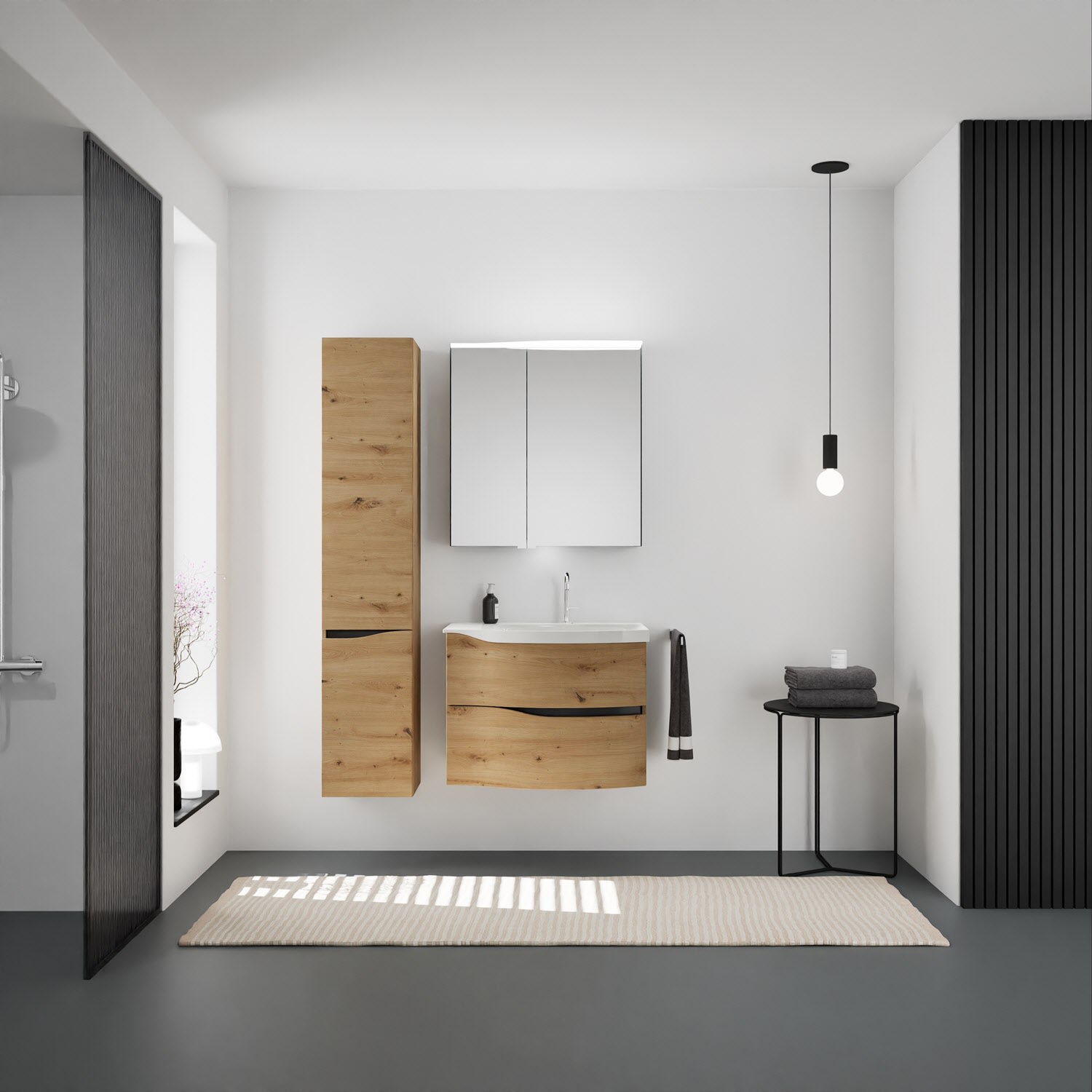 burgbad Sinea 3.0 Mineralguss-Waschtisch mit Unterschrank, 77 cm, mit Griffleiste G0292