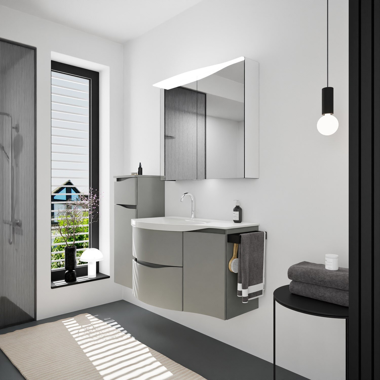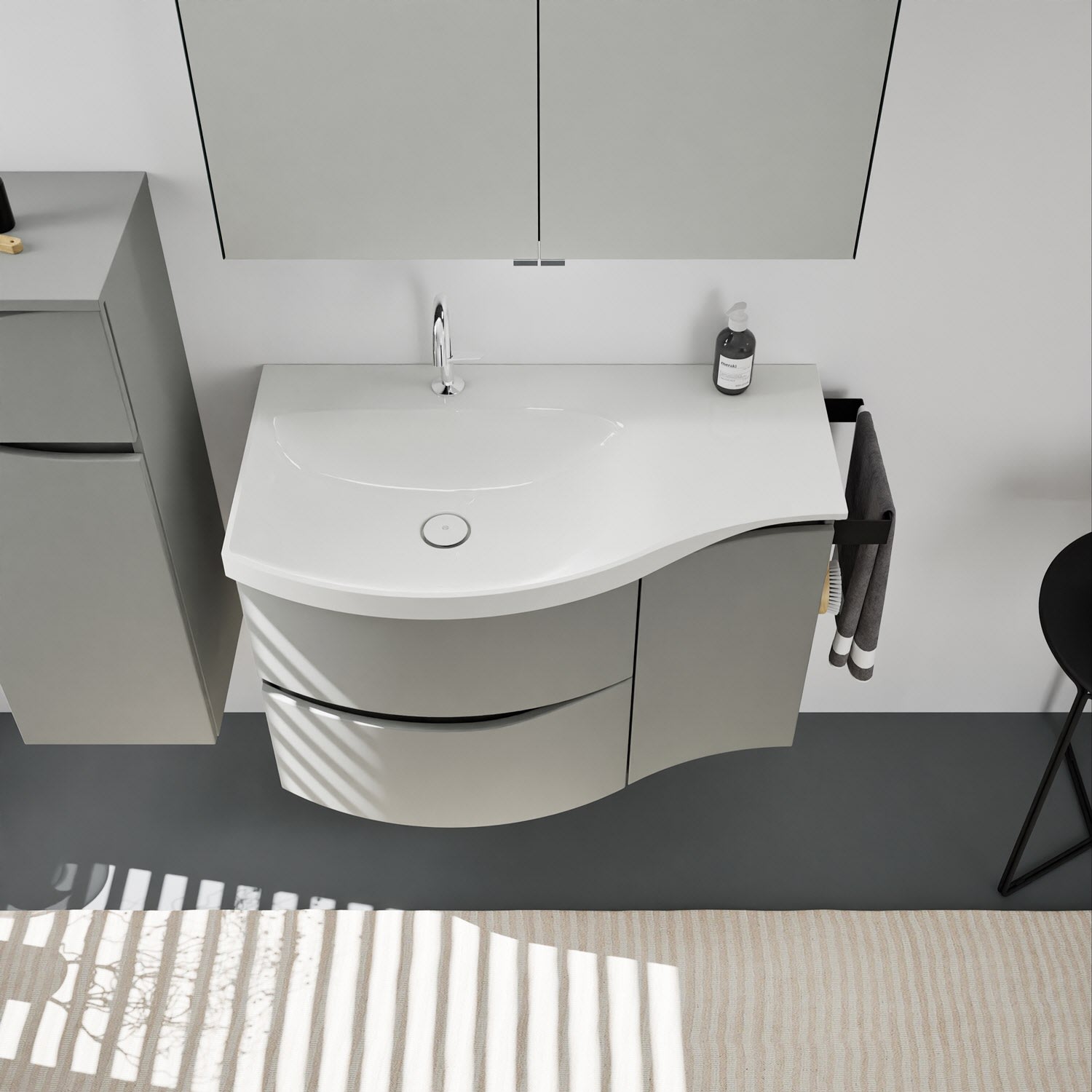 burgbad Sinea 3.0 Mineralguss-Waschtisch mit Unterschrank, 92 cm, mit Griffleiste G0167