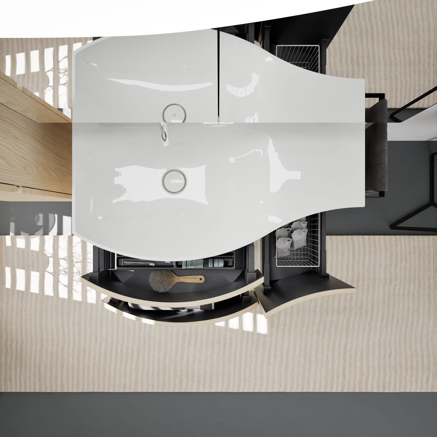 - 1 Schublade oben, mit Siphonausschnitt und Inneneinteilung