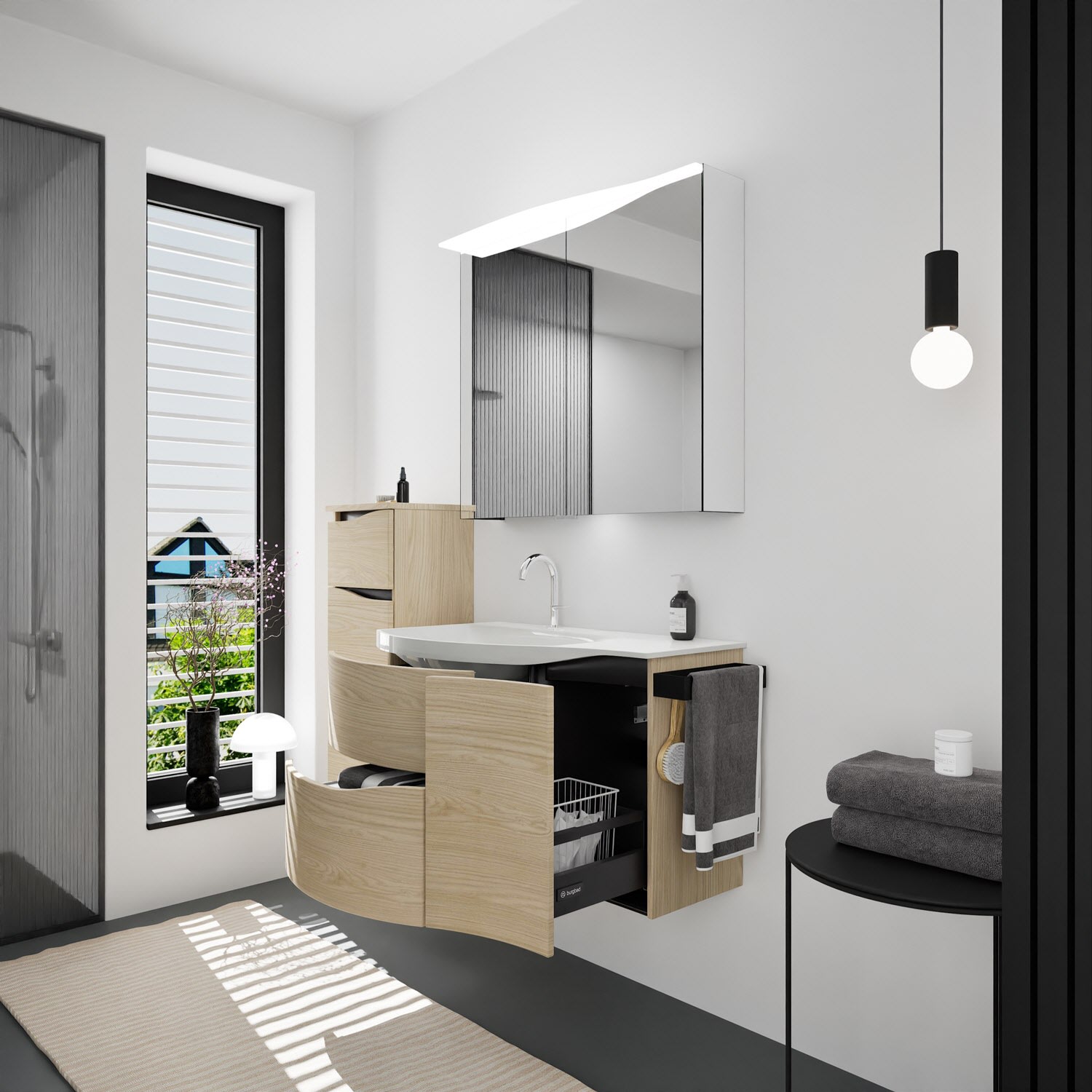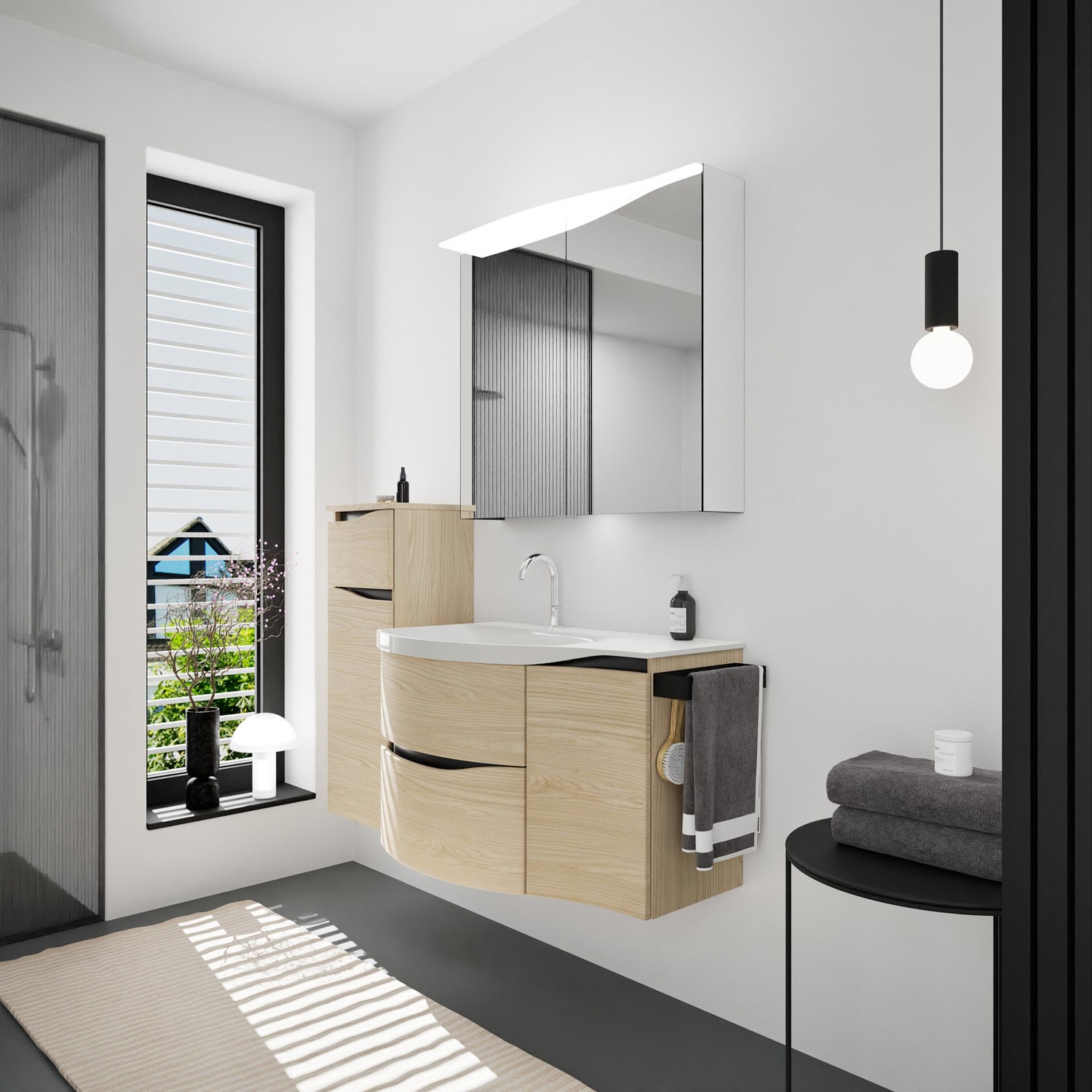 burgbad Sinea 3.0 Mineralguss-Waschtisch mit Unterschrank, 92 cm, mit Griffleiste G0292