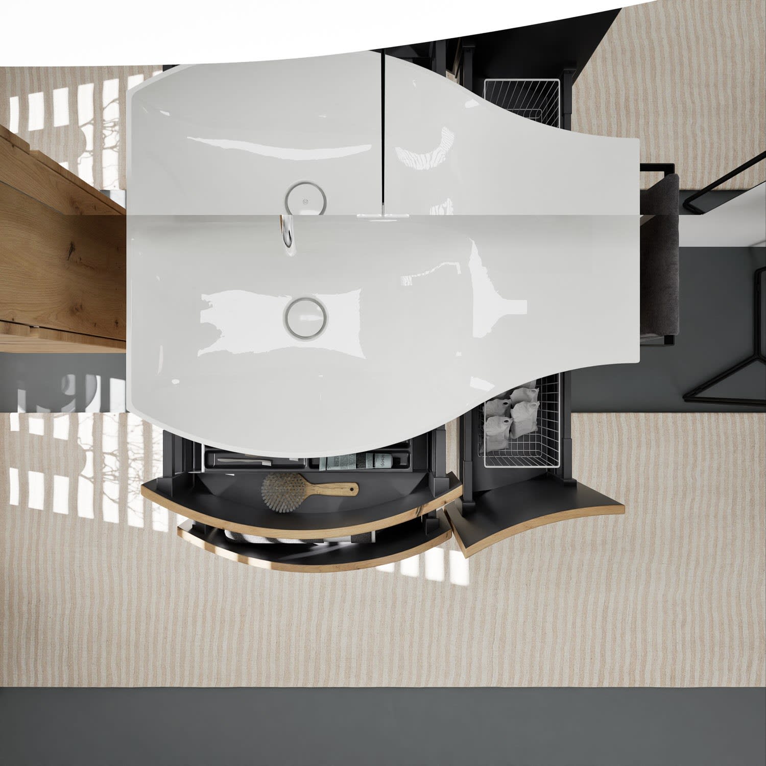 - 1 Schublade oben, mit Siphonausschnitt und Inneneinteilung