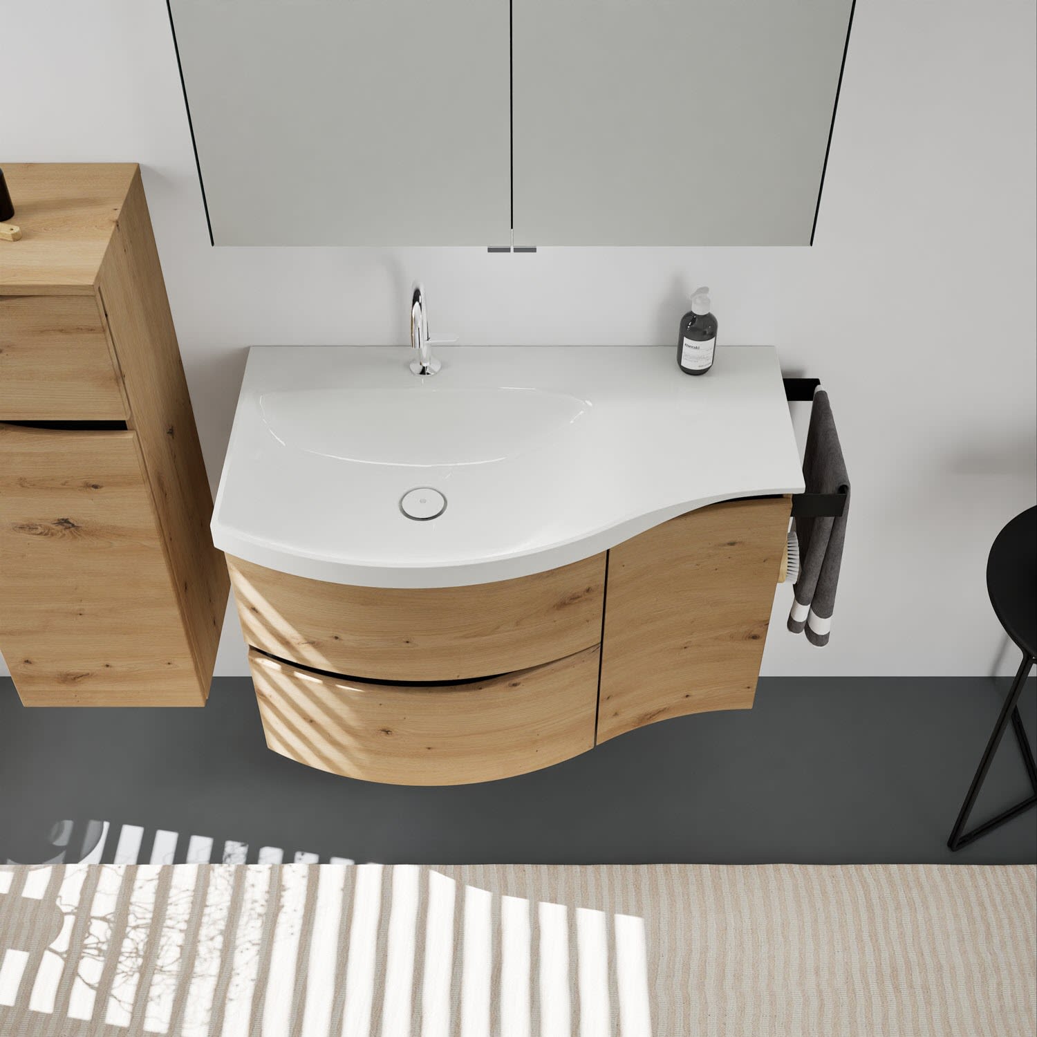 burgbad Sinea 3.0 Mineralguss-Waschtisch mit Unterschrank, 92 cm, mit Griffleiste G0292
