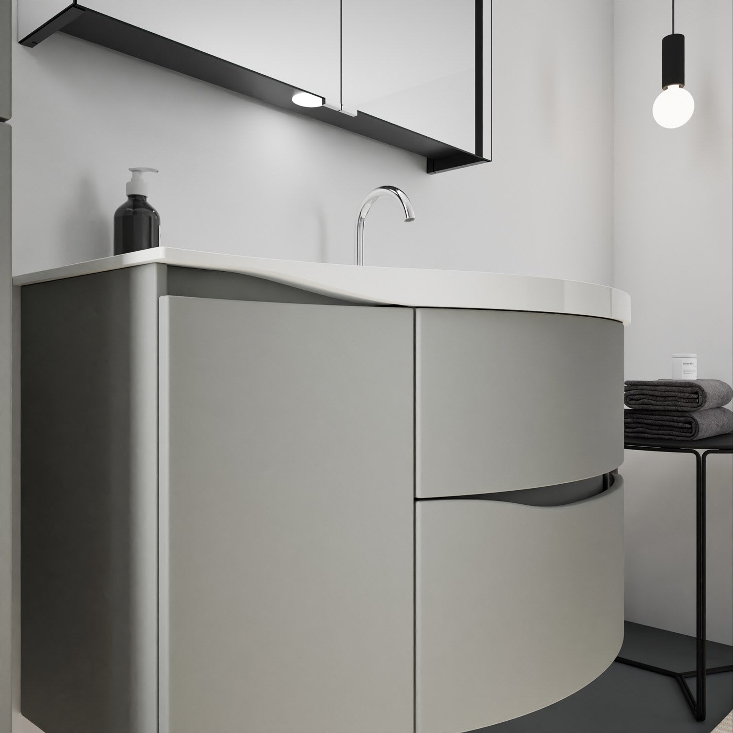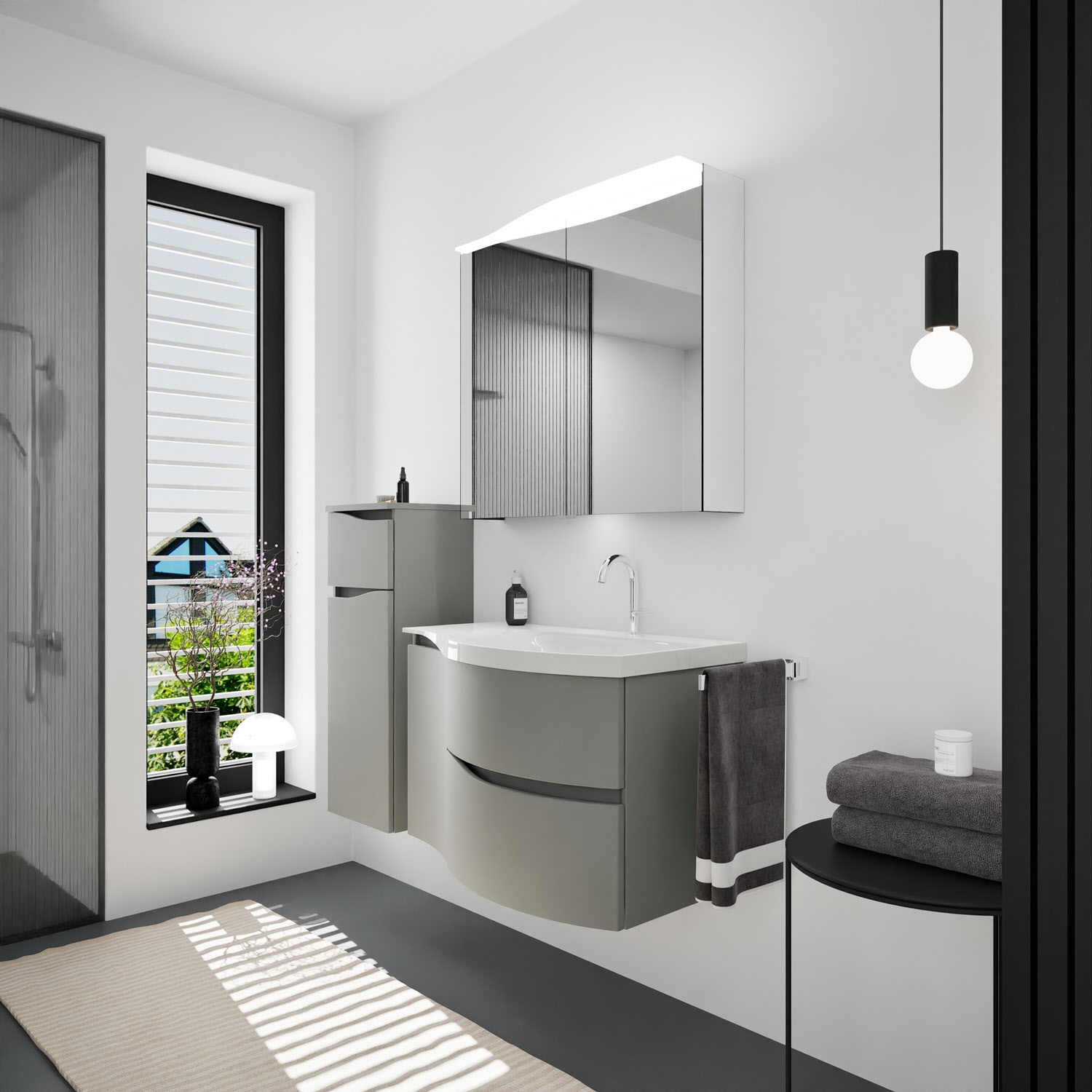 burgbad Sinea 3.0 Mineralguss-Waschtisch mit Unterschrank, 92 cm, mit Griffleiste G0167