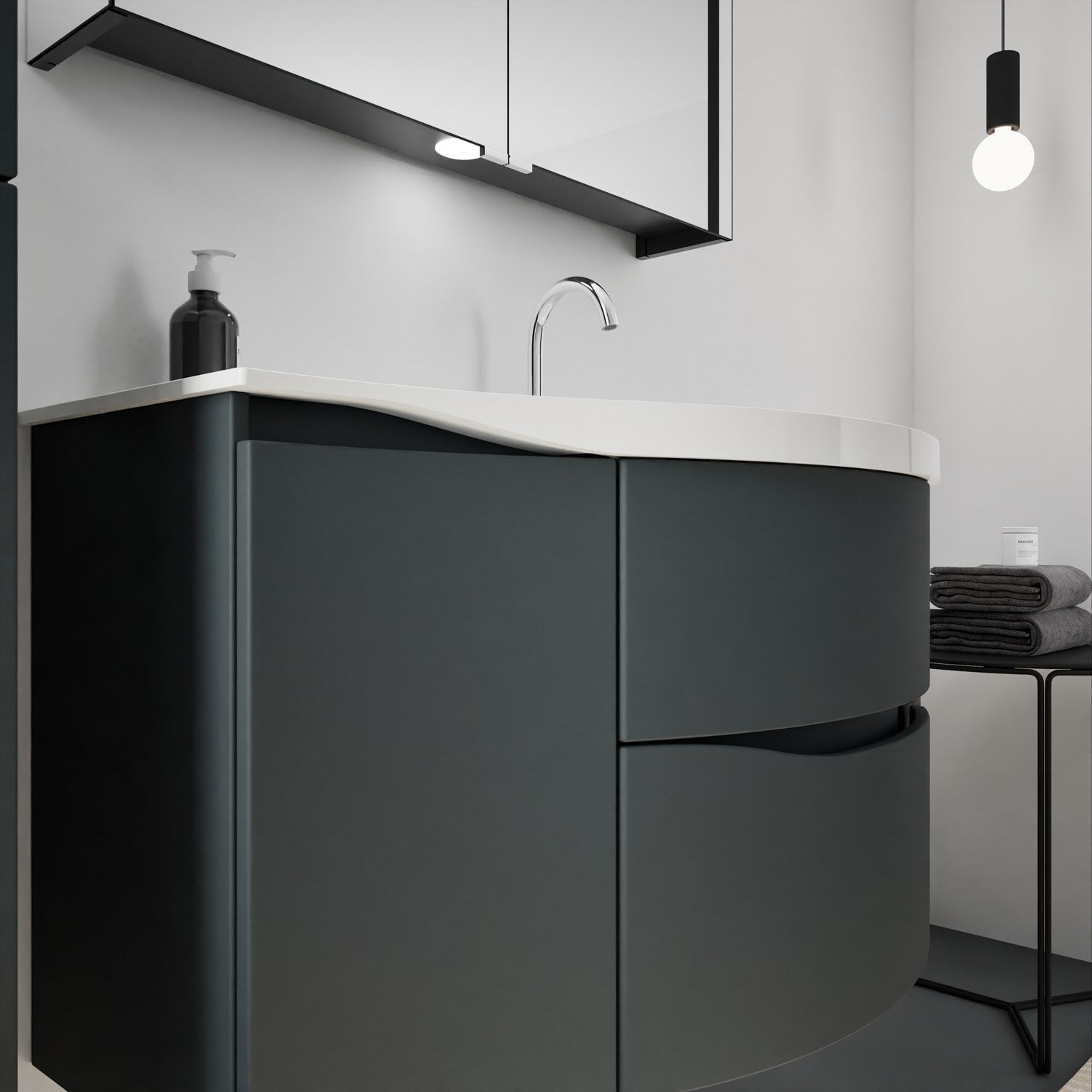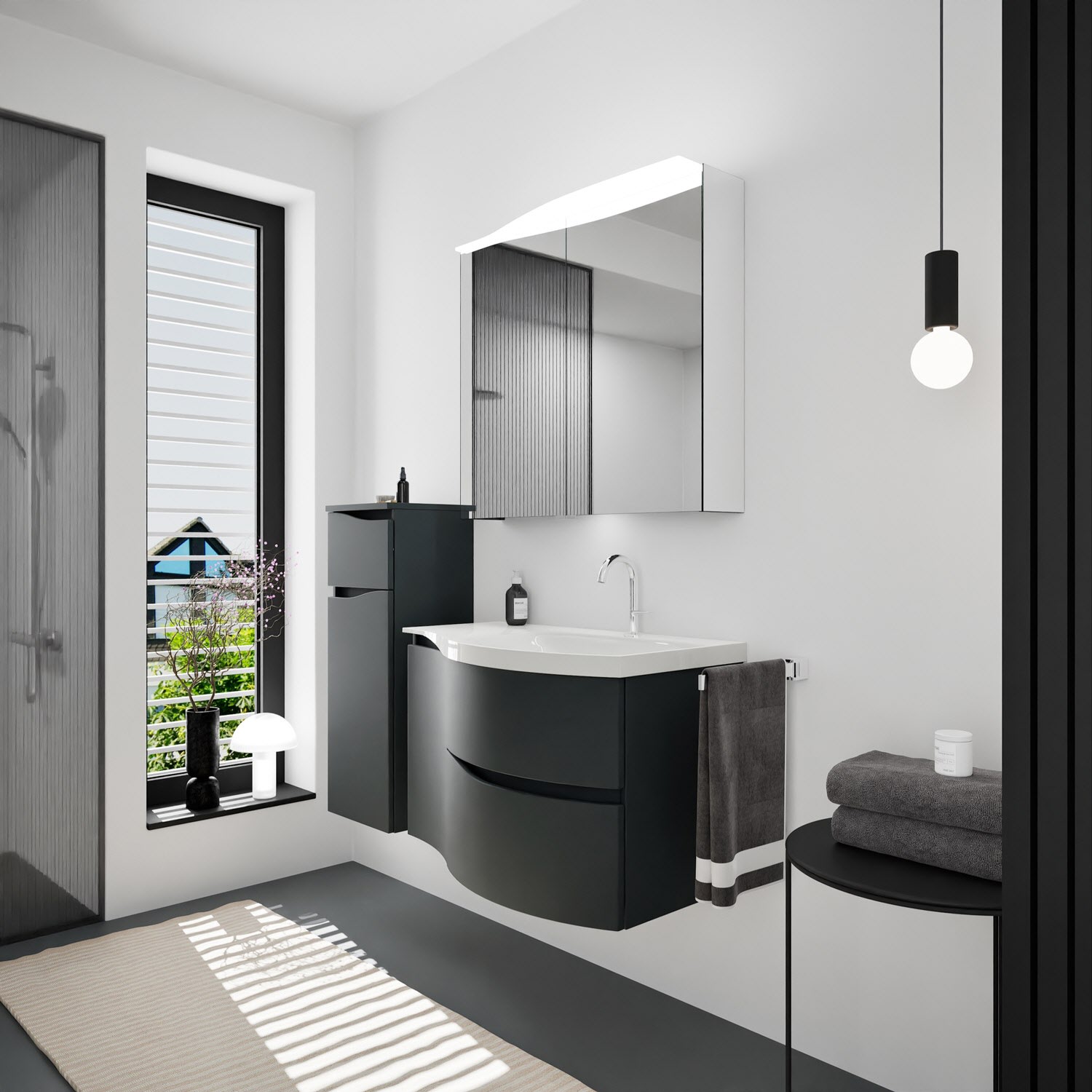 burgbad Sinea 3.0 Mineralguss-Waschtisch mit Unterschrank, 92 cm, mit Griffleiste G0167