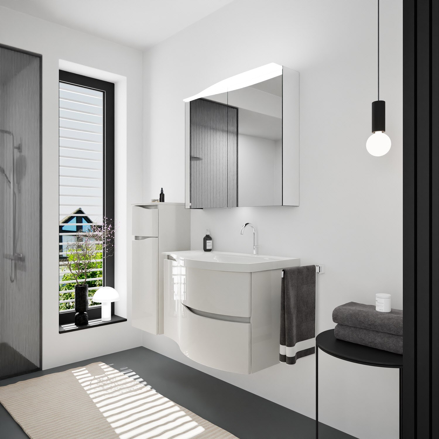 burgbad Sinea 3.0 Mineralguss-Waschtisch mit Unterschrank, 92 cm, mit Griffleiste G0167