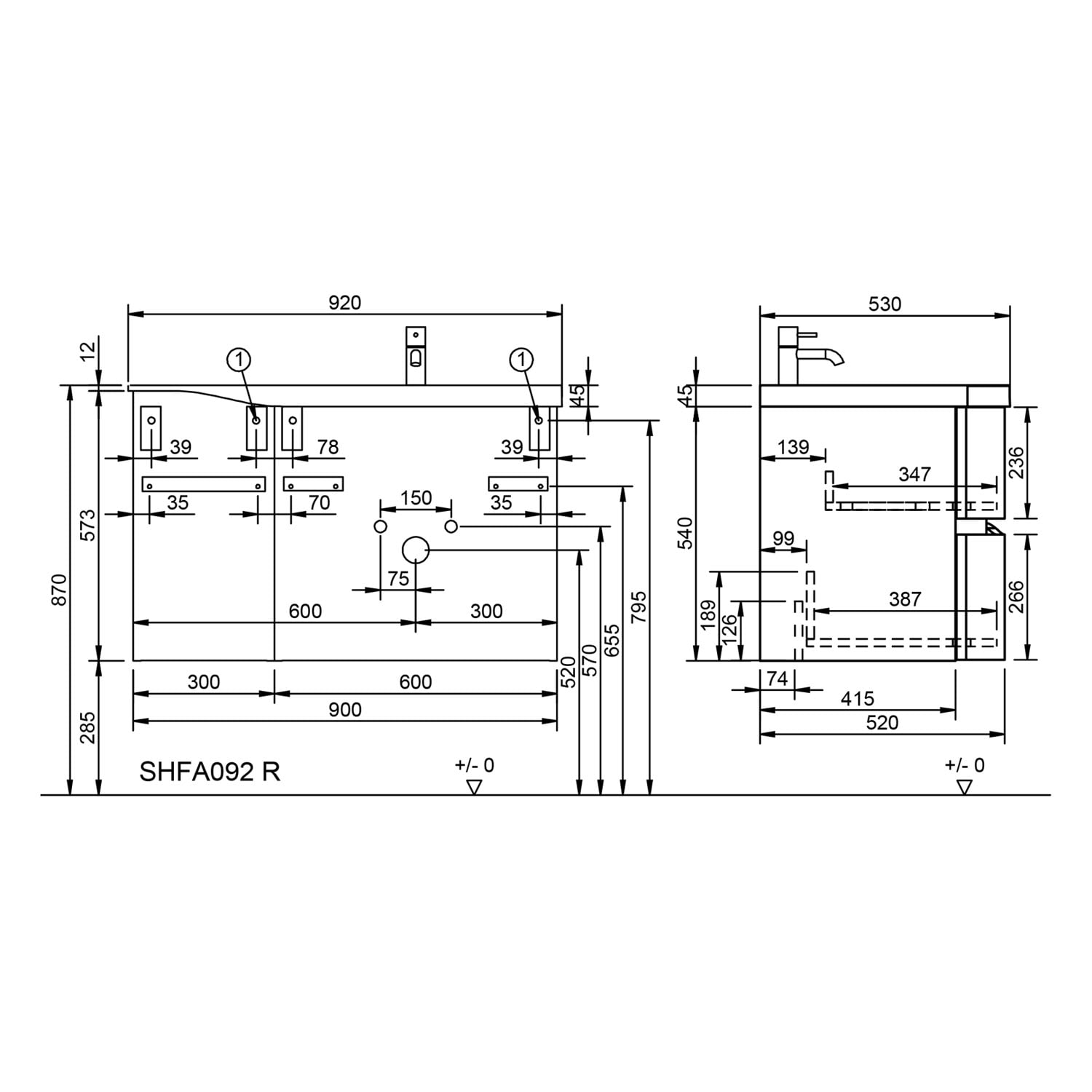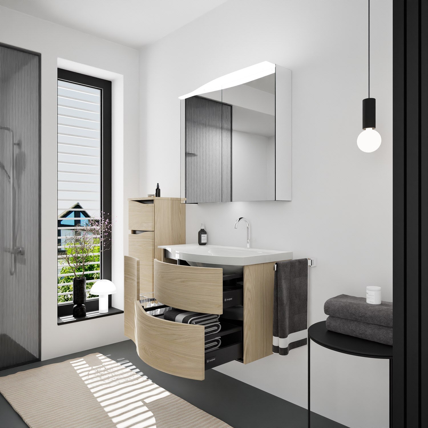 burgbad Sinea 3.0 Mineralguss-Waschtisch mit Unterschrank, 92 cm, mit Griffleiste G0292