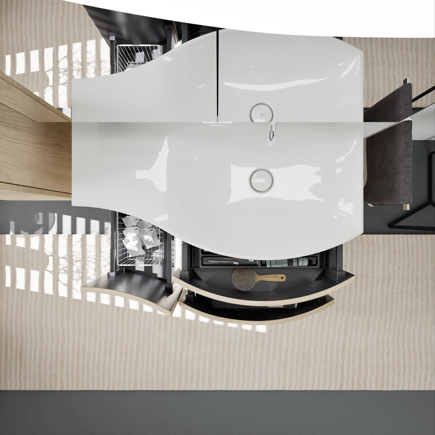 - 1 Schublade oben, mit Siphonausschnitt und Inneneinteilung