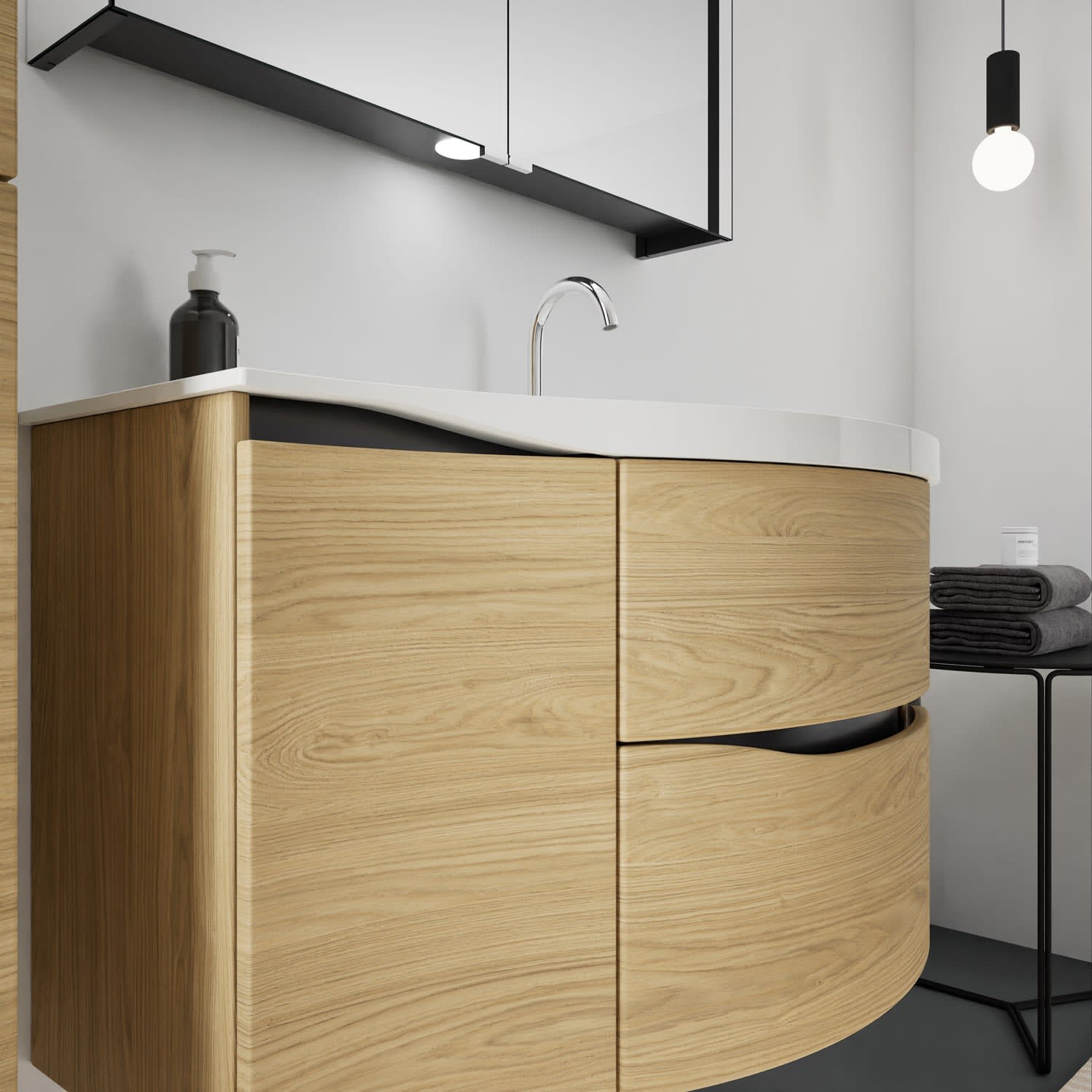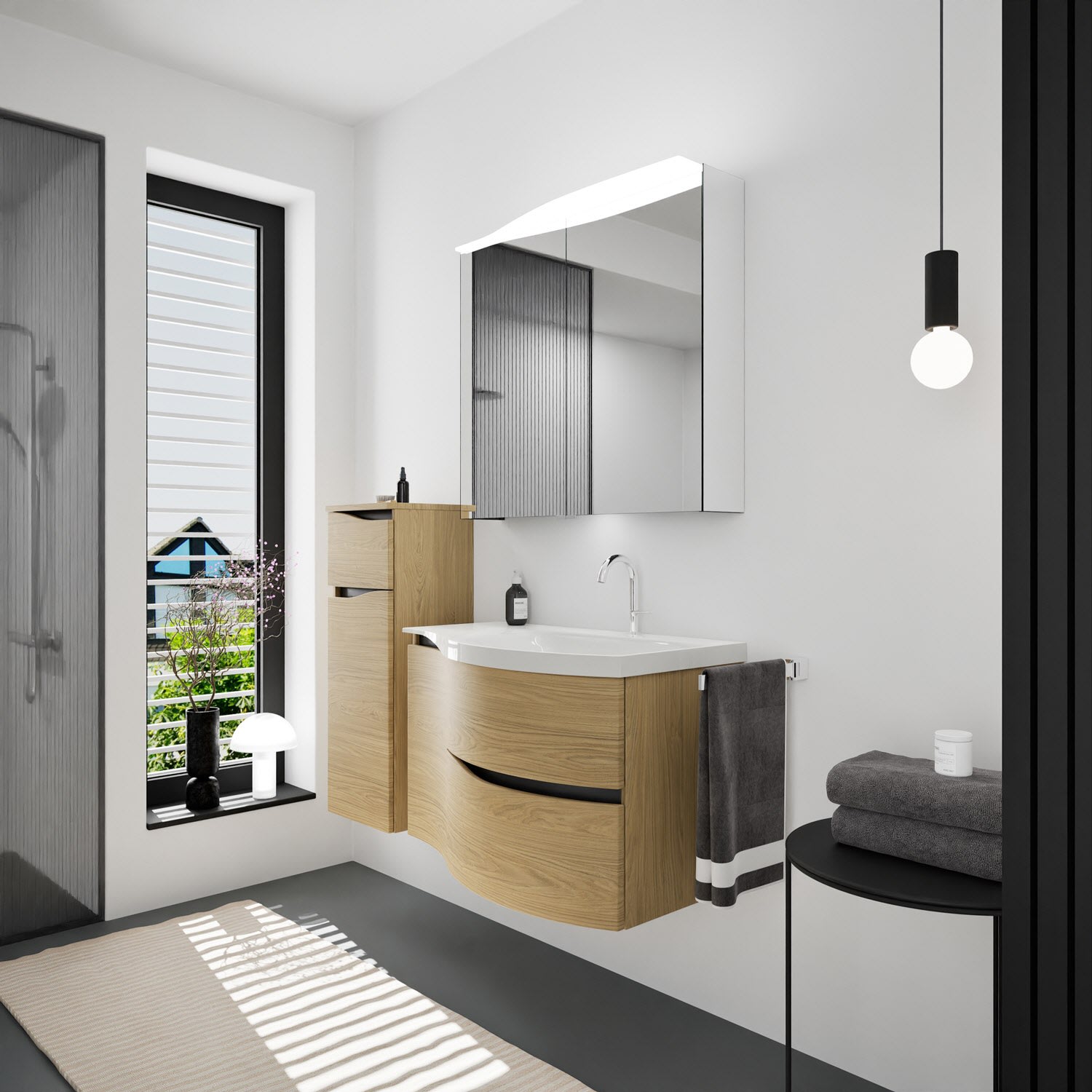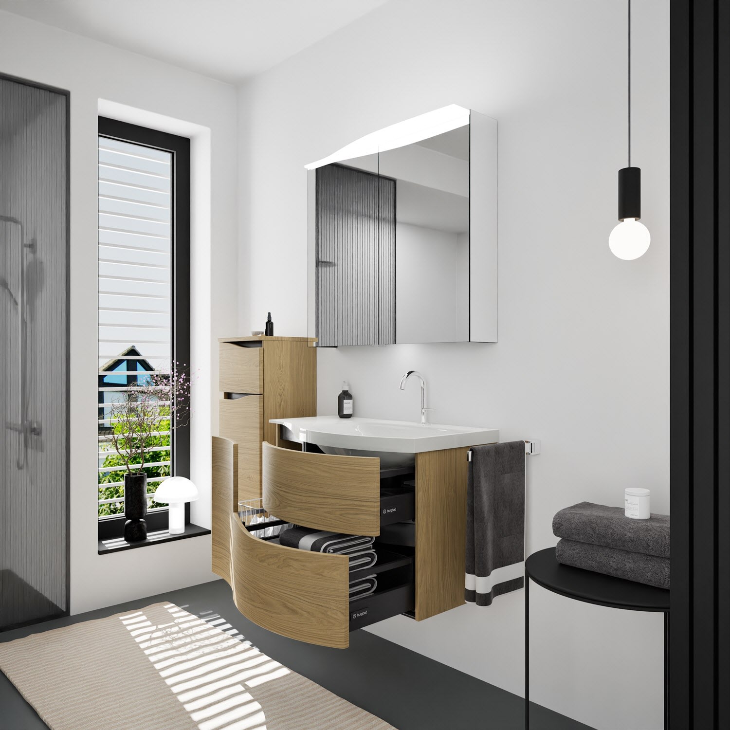 burgbad Sinea 3.0 Mineralguss-Waschtisch mit Unterschrank, 92 cm, mit Griffleiste G0292