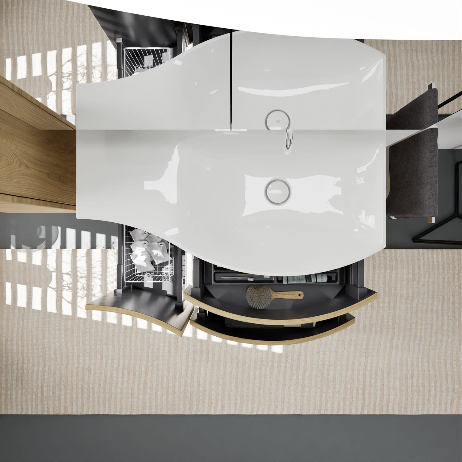 - 1 Schublade oben, mit Siphonausschnitt und Inneneinteilung