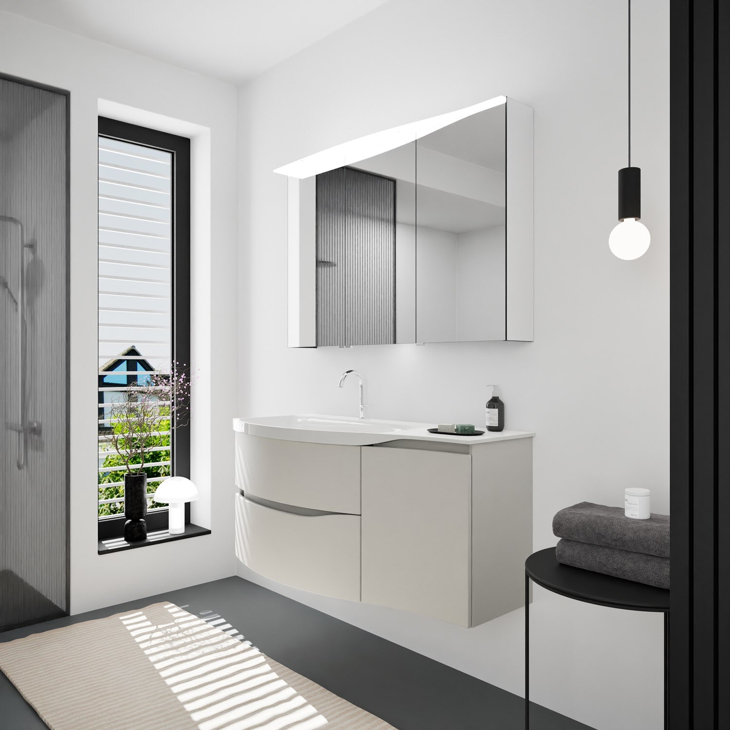 burgbad Sinea 3.0 Mineralguss-Waschtisch mit Unterschrank, 122 cm, mit Griffleiste G0167
