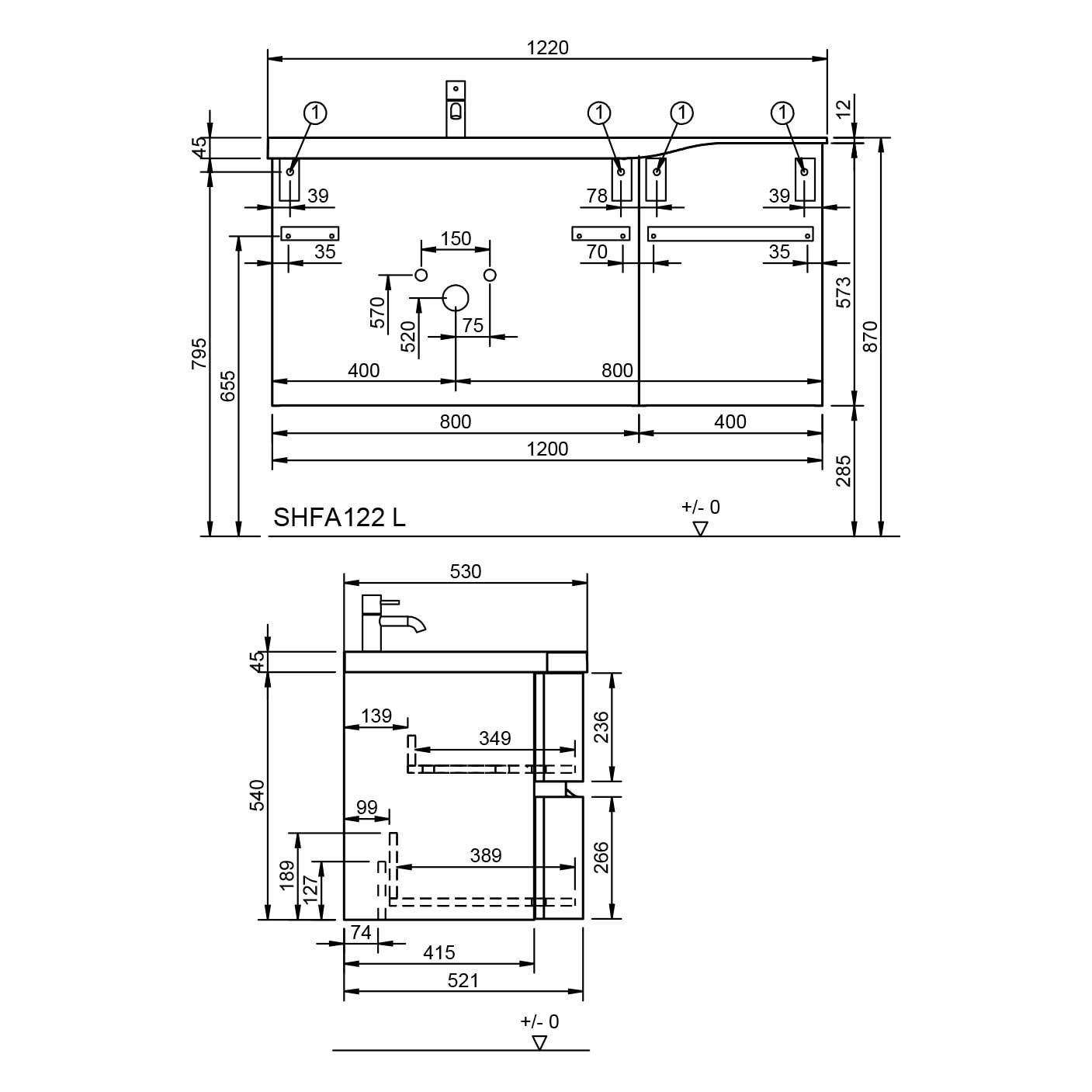 pianura Stella Waschtisch mit Unterschrank 121 cm, mit 2 Hahnlöchern