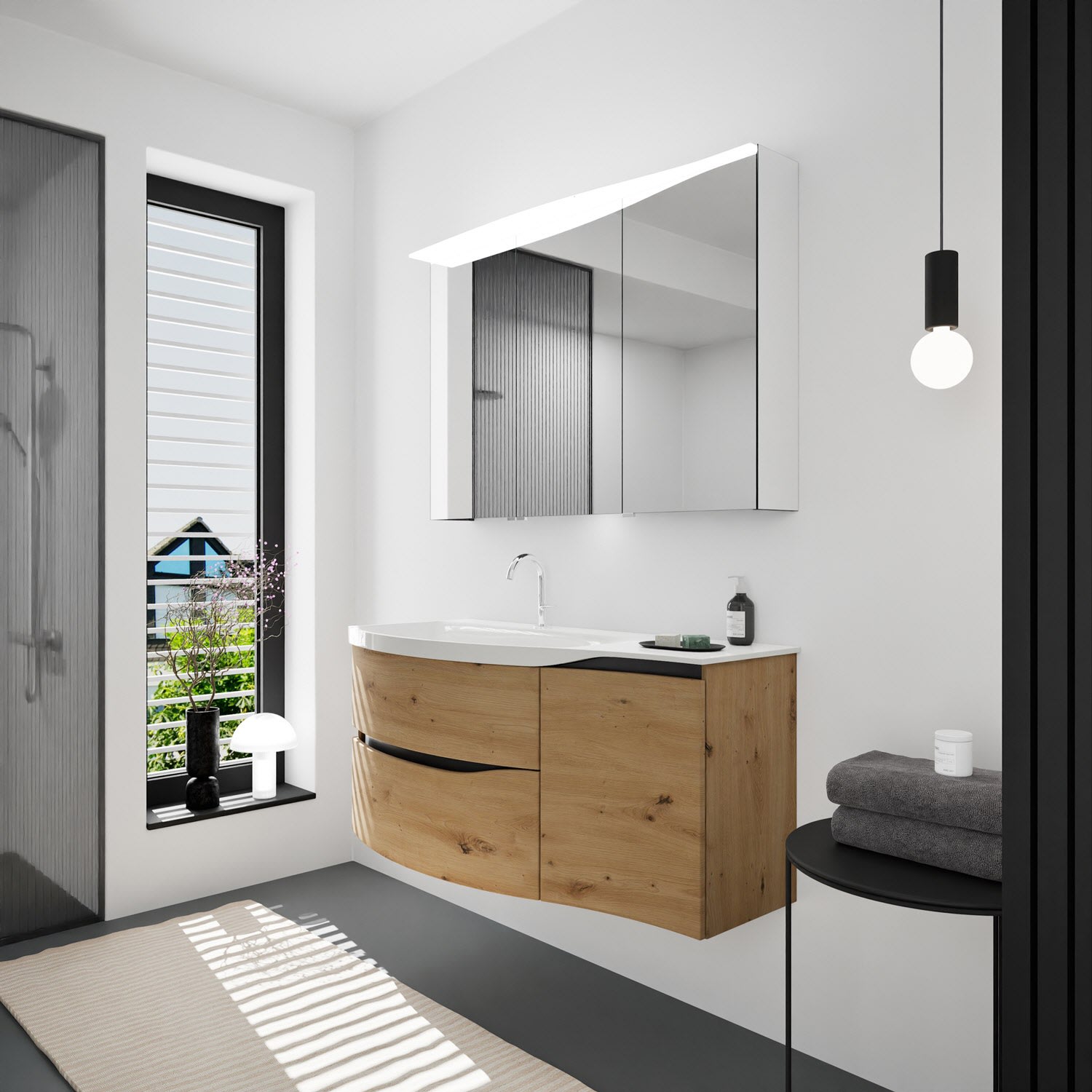 burgbad Sinea 3.0 Mineralguss-Waschtisch mit Unterschrank, 122 cm, mit Griffleiste G0292