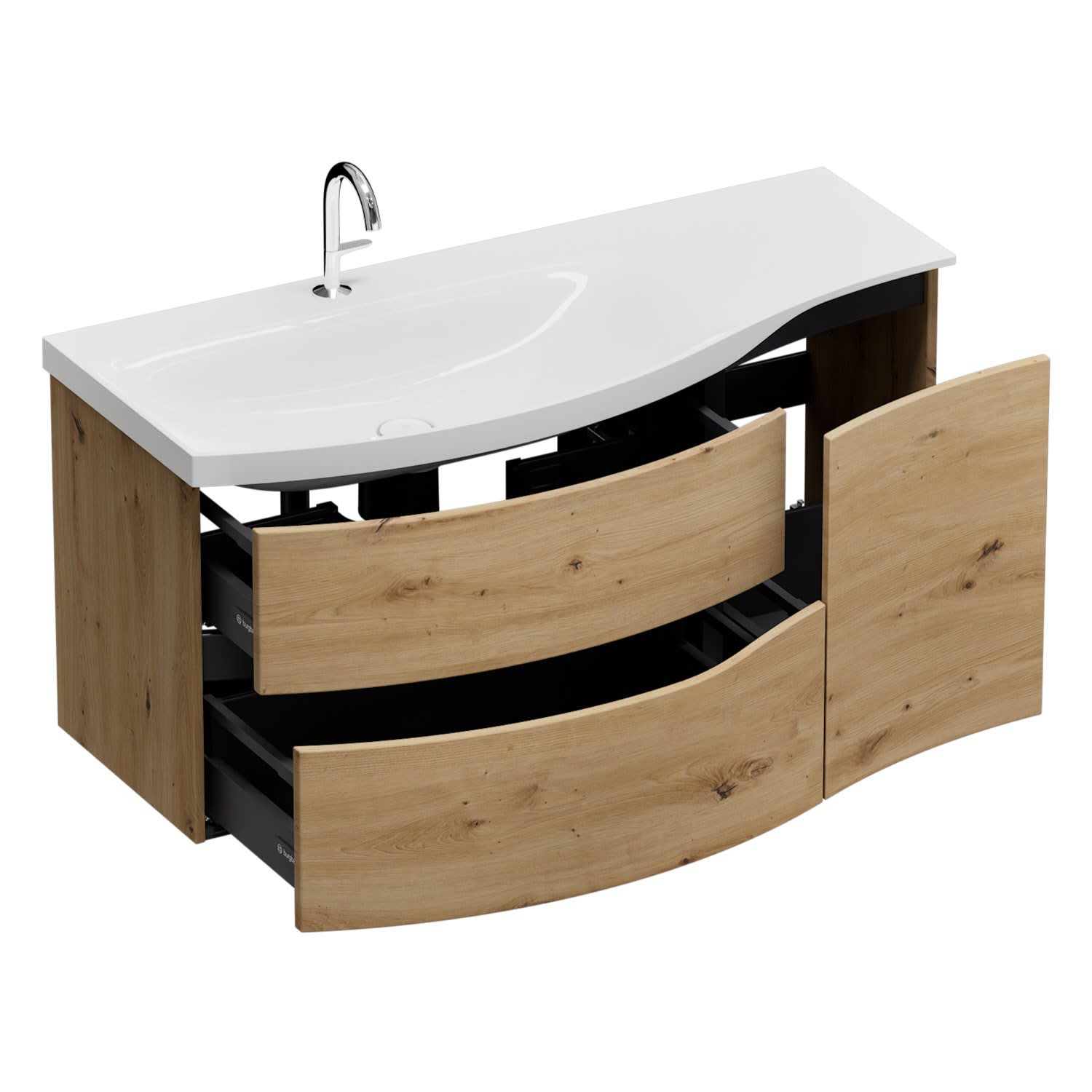 - 1 Schublade oben, mit Siphonausschnitt und Inneneinteilung