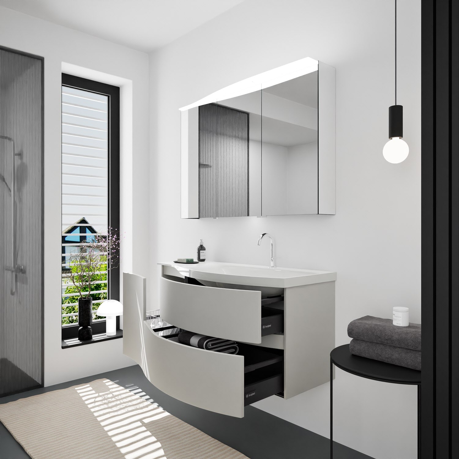 burgbad Sinea 3.0 Mineralguss-Waschtisch mit Unterschrank, 122 cm, mit Griffleiste G0167